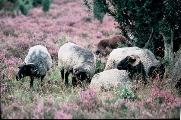 Heidschnucken auf der Lüneburger Heide.