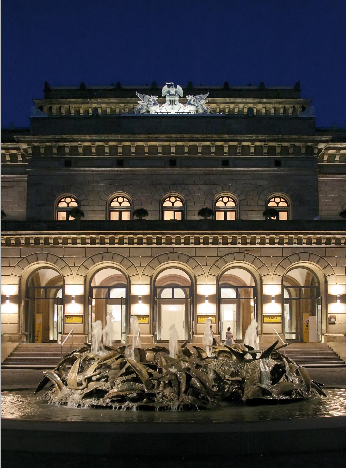 Das Staatstheater mit Cimiotti-Brunnen in Braunschweig.