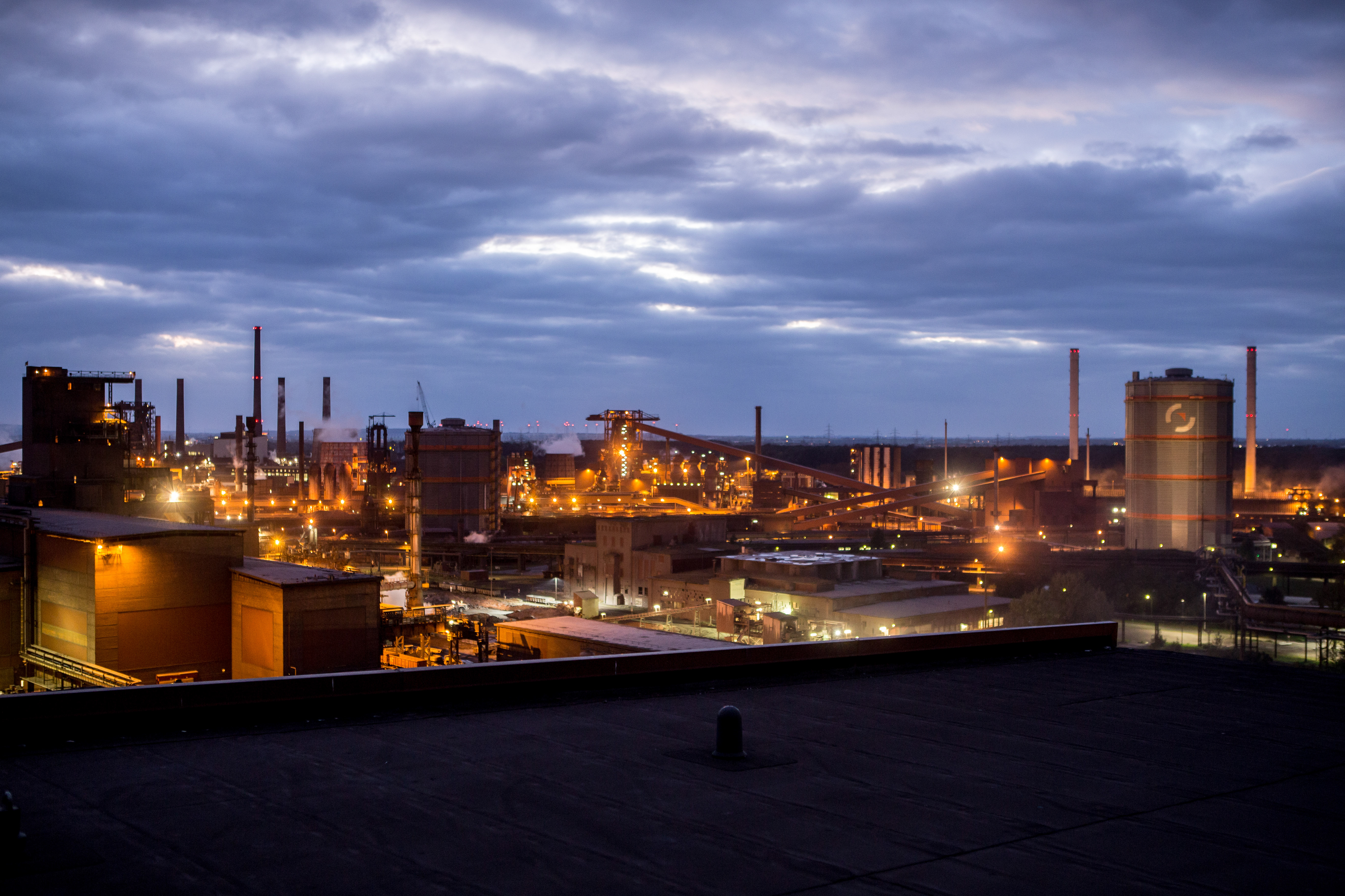 Blick auf das Werk Salzgitter bei Nacht.