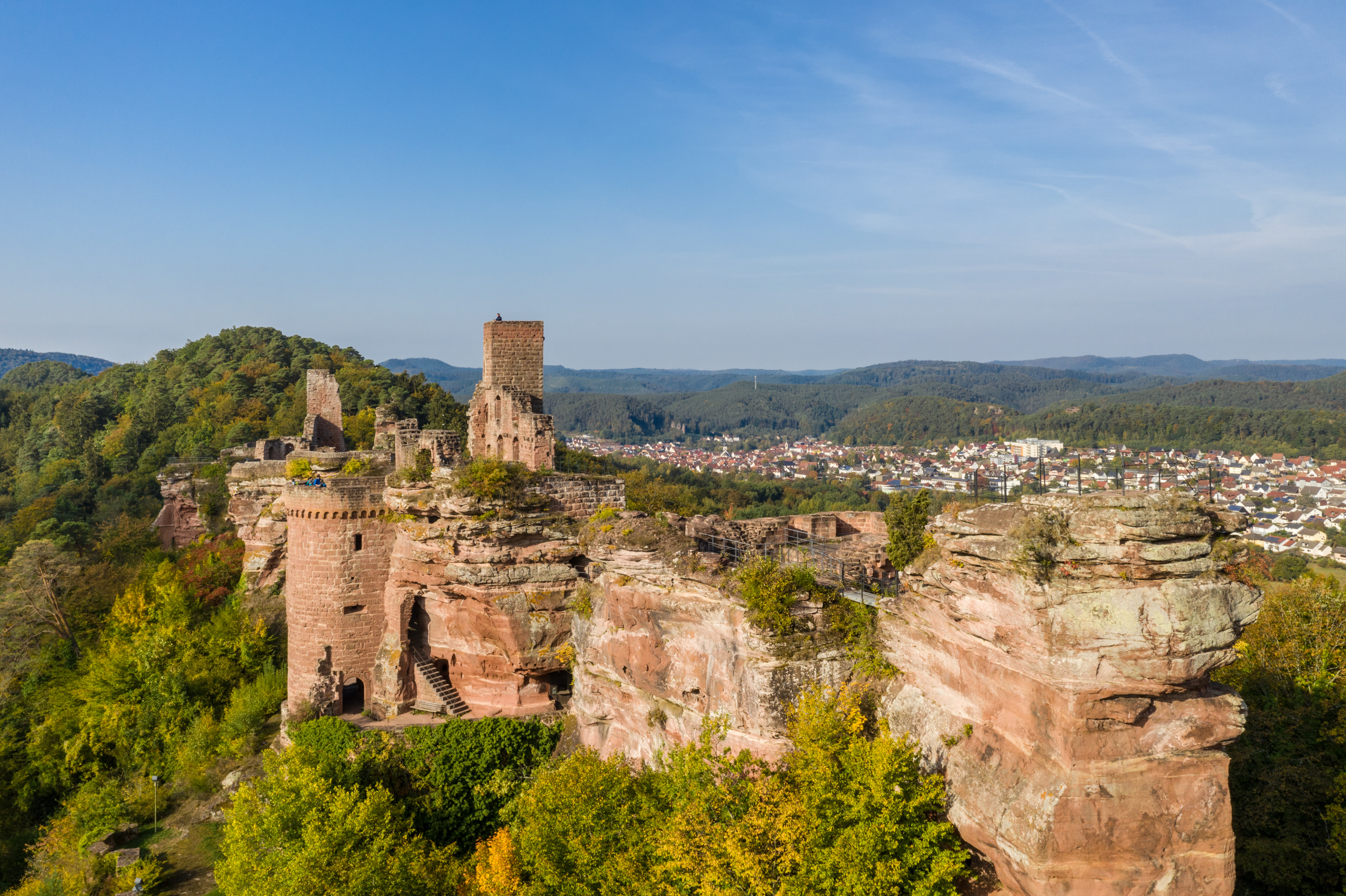Eindrucksvoll ist das Burgenmassiv Dahn mit den drei Burgen Altdahn, Grafendahn und Tanstein, die auf einer 200 Meter langen Sandsteinklippe thronen. Die Burg Altdahn ist dabei die bekannteste.