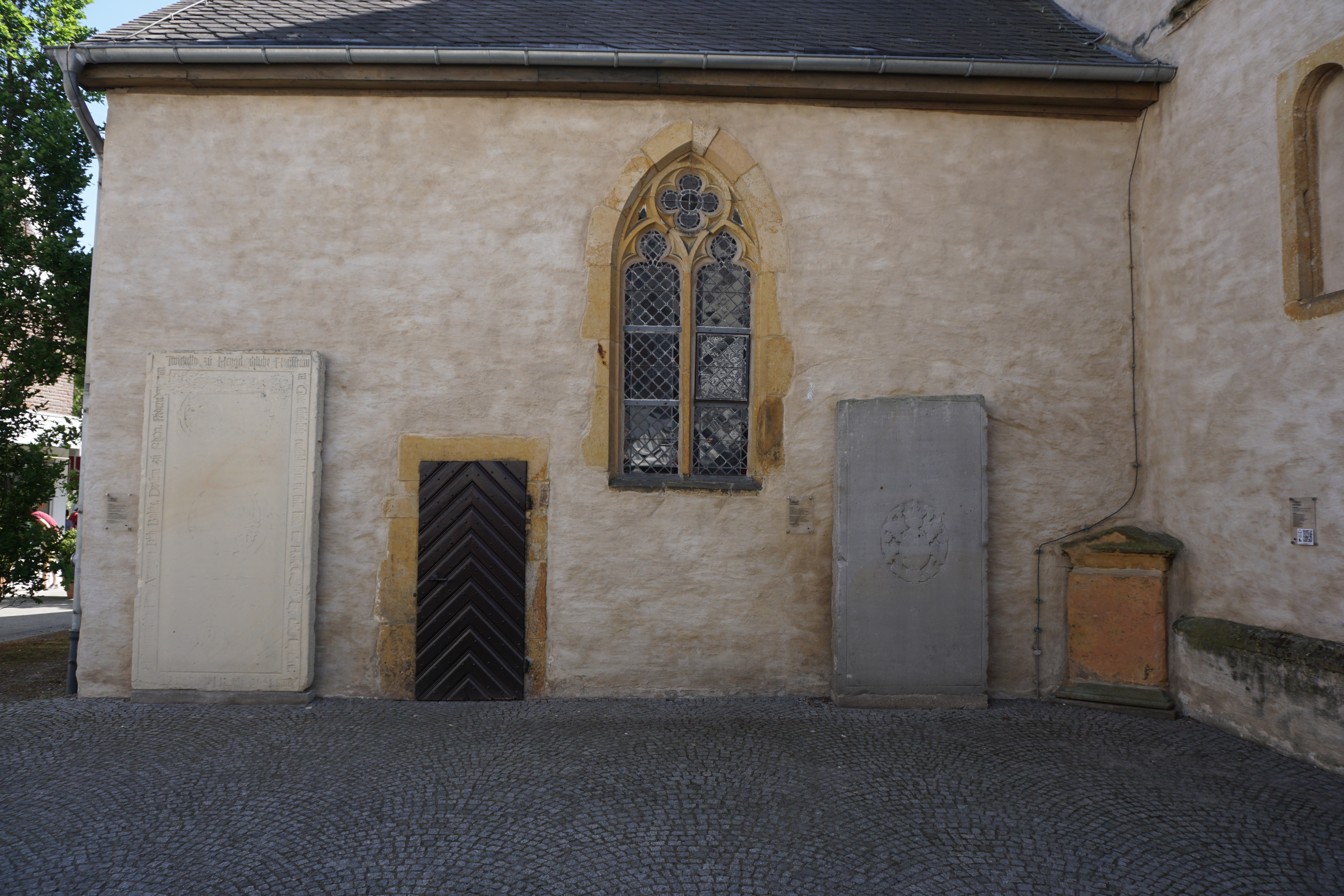 Grabplatte von Twickel zu Hengelo aus dem 16. Jahrhundert an der Nordseite der Stadtkirche Rheda, Rheda-Wiedenbrück.