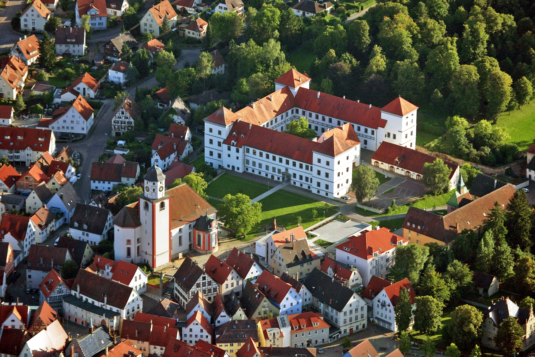 Schloss und die Stadtkirche St. Martin von Meßkirch.