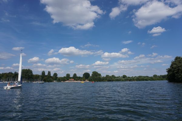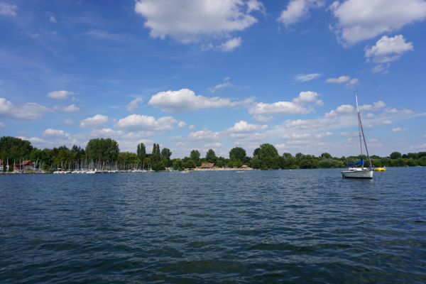 Segler auf dem Lippesee. Hier aufgenommen bei einer Bootsfahrt über den Lippesee.
