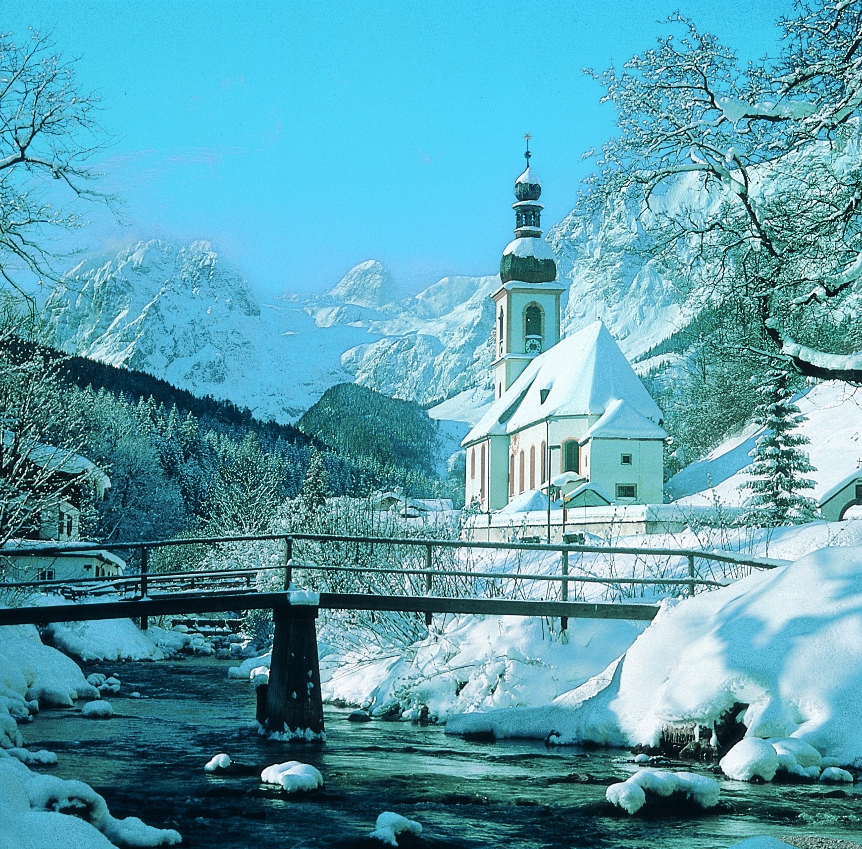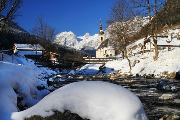Die Ramsauer Kirche / Pfarrkirche St. Sebastian im Winter.