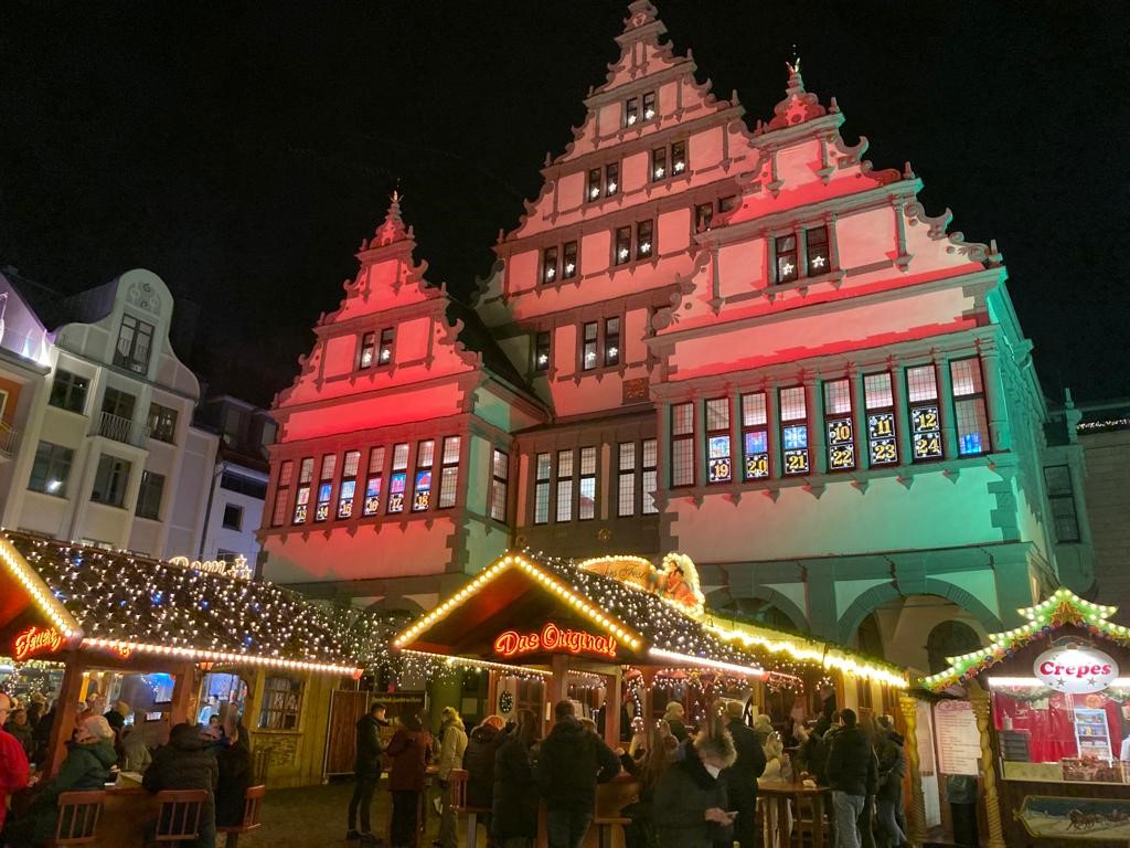 Rathaus von Paderborn zu Weihnachten.