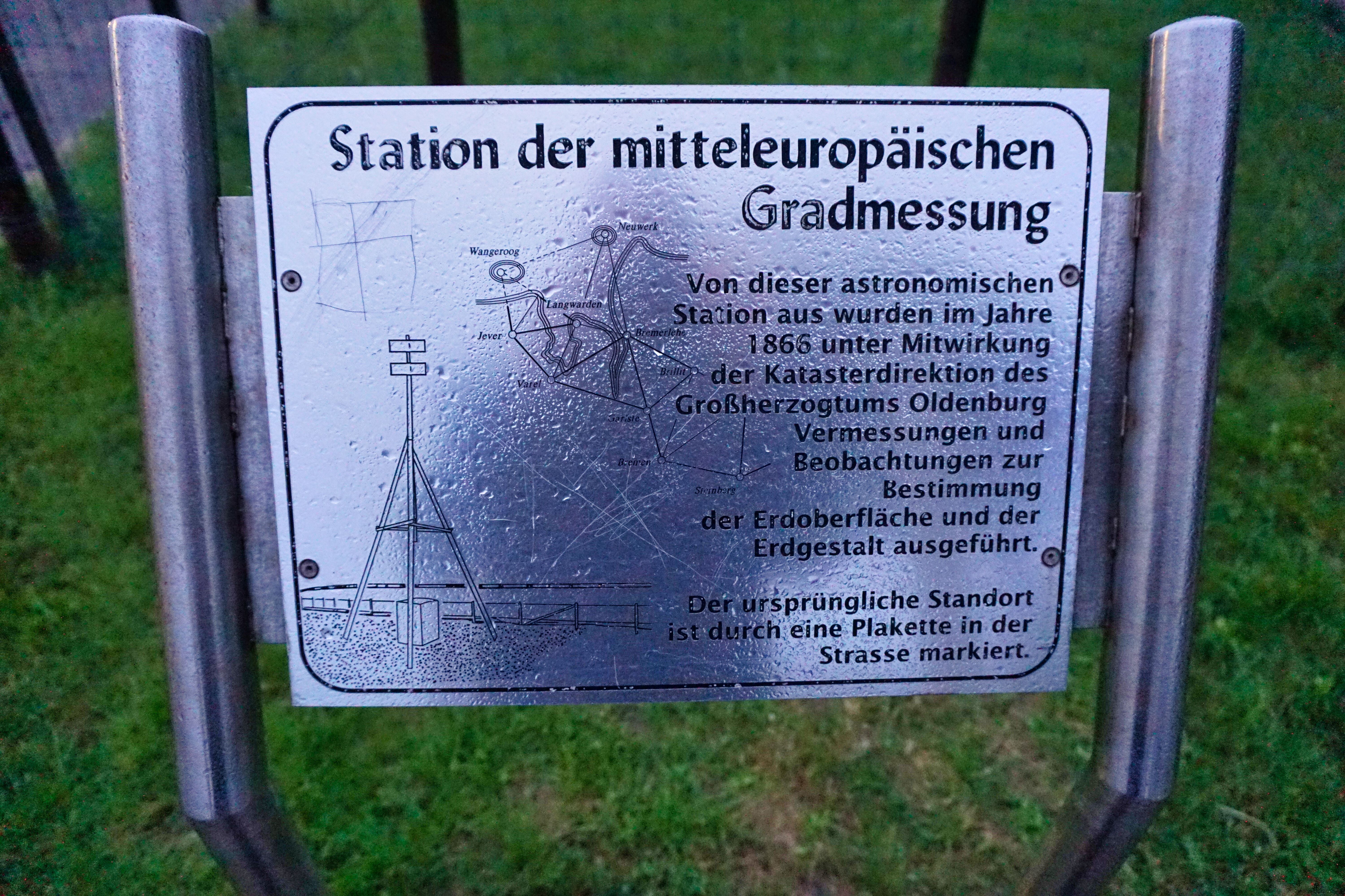 Infotafel Station mitteleuropäische Gradmessung in Dangast, Varel.