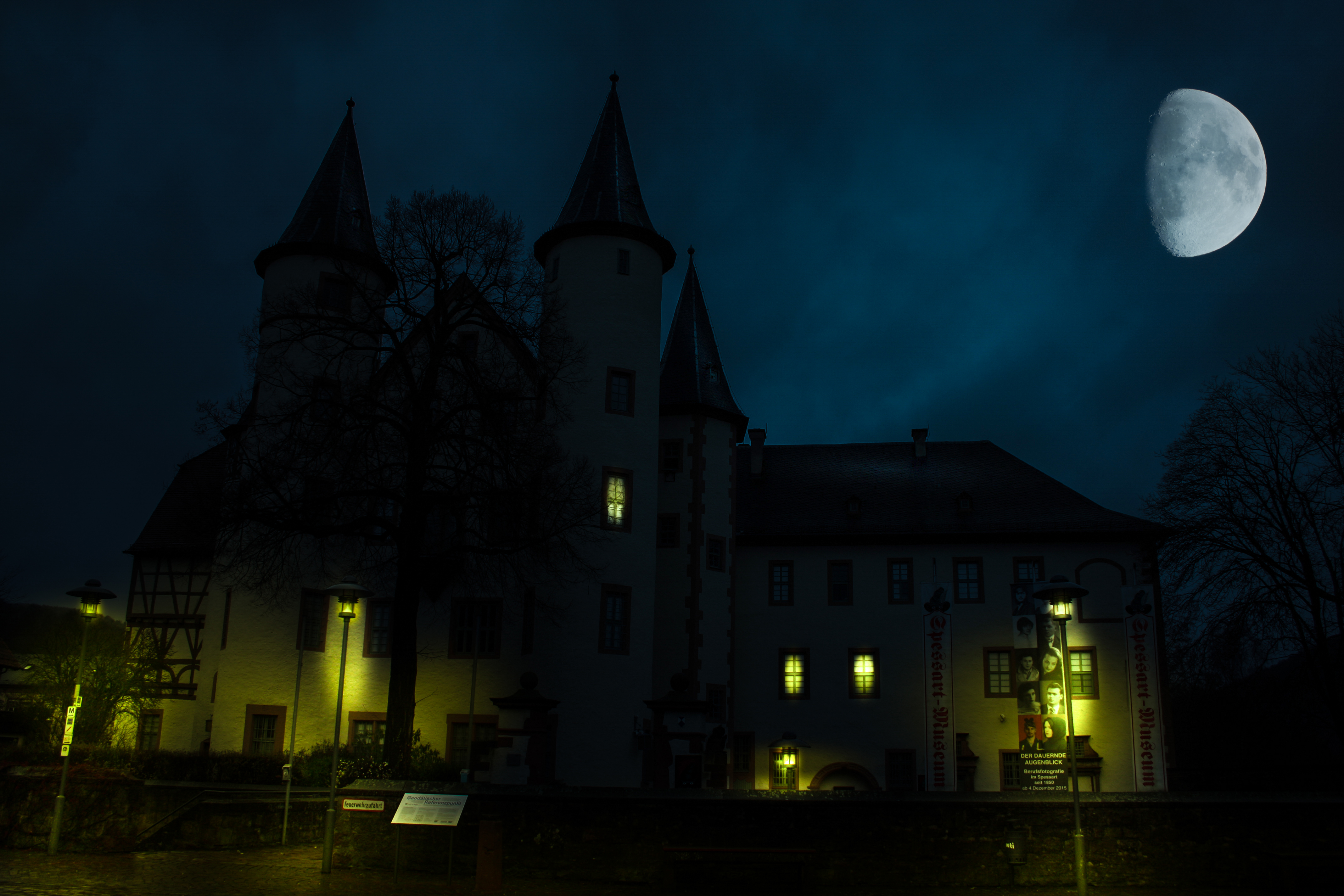 Schloss Lohr am Main bei Nacht.