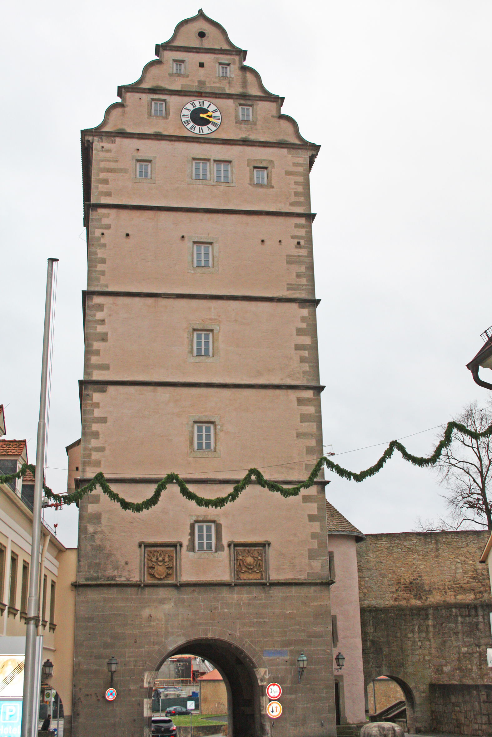 Das Hohntor, Wahrzeichen von Bad Neustadt, ist 34m hoch und wurde bereits 1578/79 unter Fürstbischof Julius Echter errichtet.