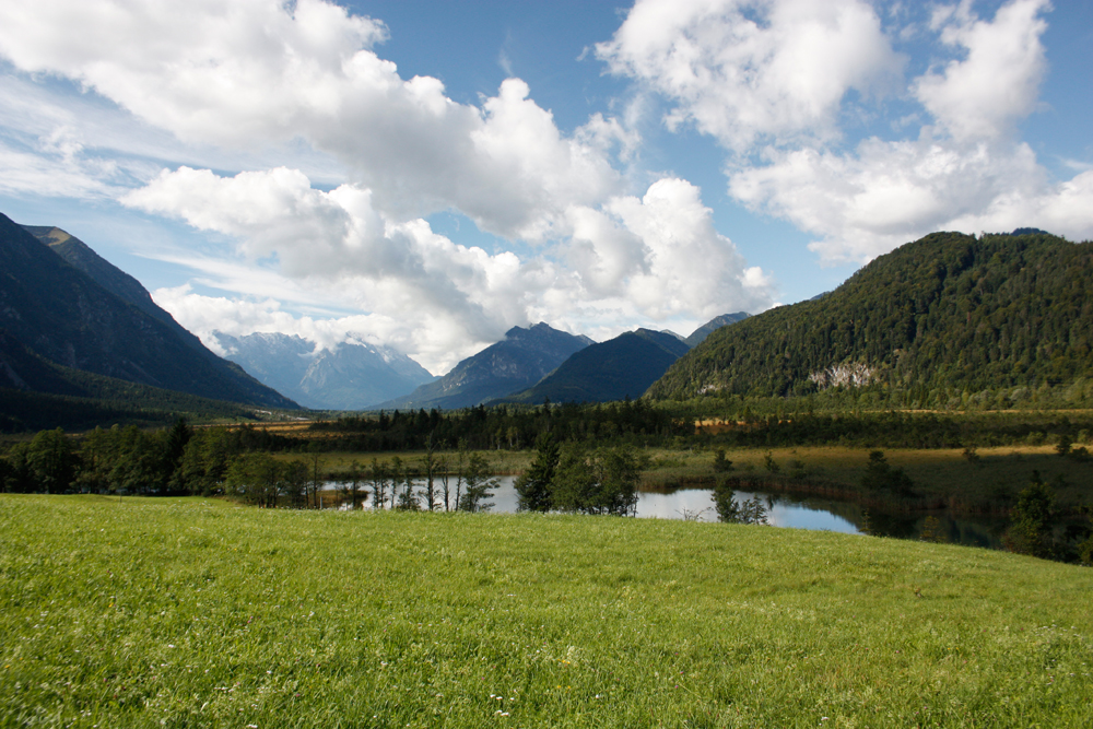 Südlich von Eschenlohe entspringen Sieben Quellen mit herrlichem Blick auf die Zugspitze.