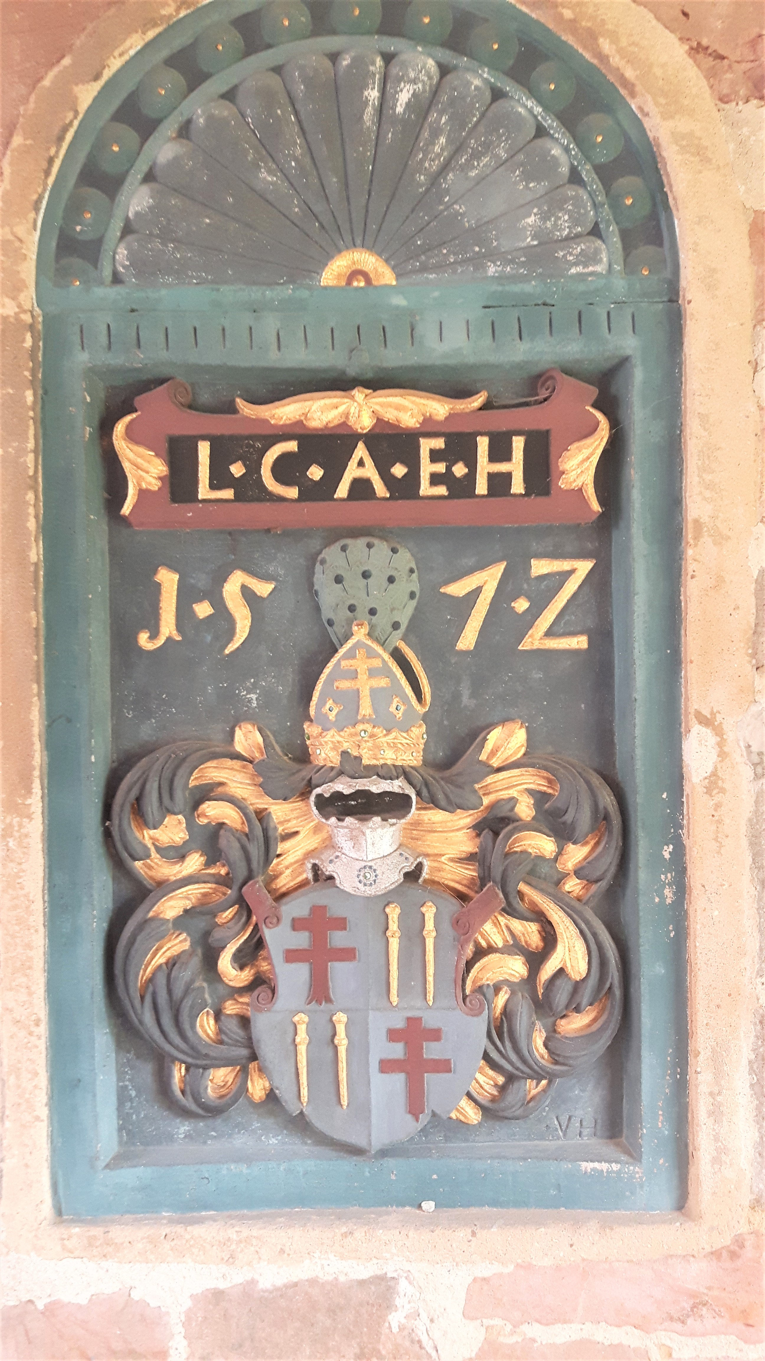 Im Eingangsbereich von Schloss Eichhof befindet sich das Wappen von Abt Ludwig V. (1571–1588).