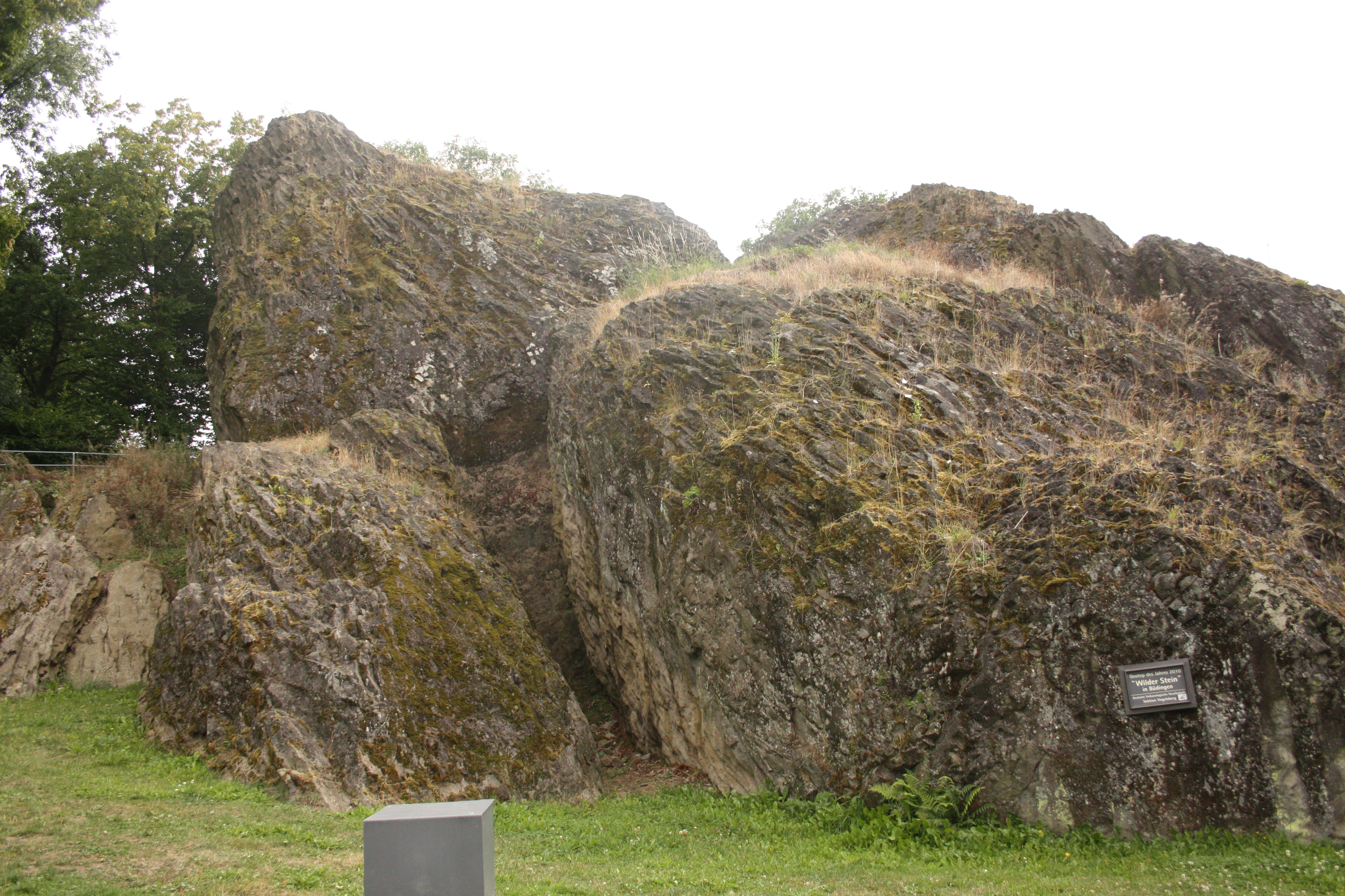 Der vor etwa 19 Millionen Jahren im Jungtertiär entstandene „Wilde Stein“ in Büdingen ist ein seltenes aus Säulenbasalt bestehendes Geotop. Der Nebenschlot des Vogelsbergvulkans besteht aus feinsäuligen Basalt mit Einschlüssen von Buntsandstein.