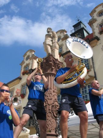 Rathausplatz Sigmaringen mit Rathaus und Marktbrunnen.