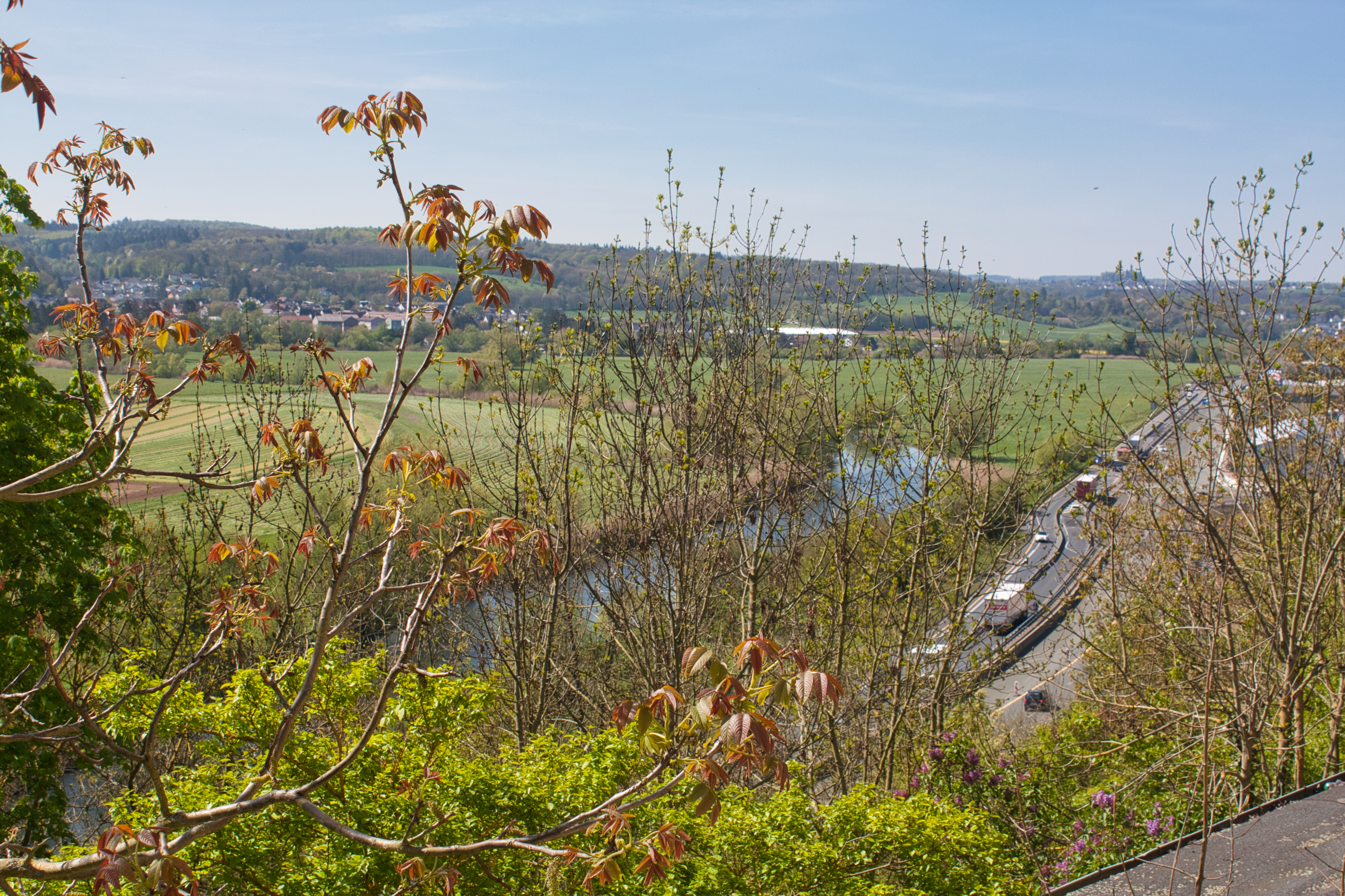 Ausblick vom Kloster Altenberg auf das Lahntal.