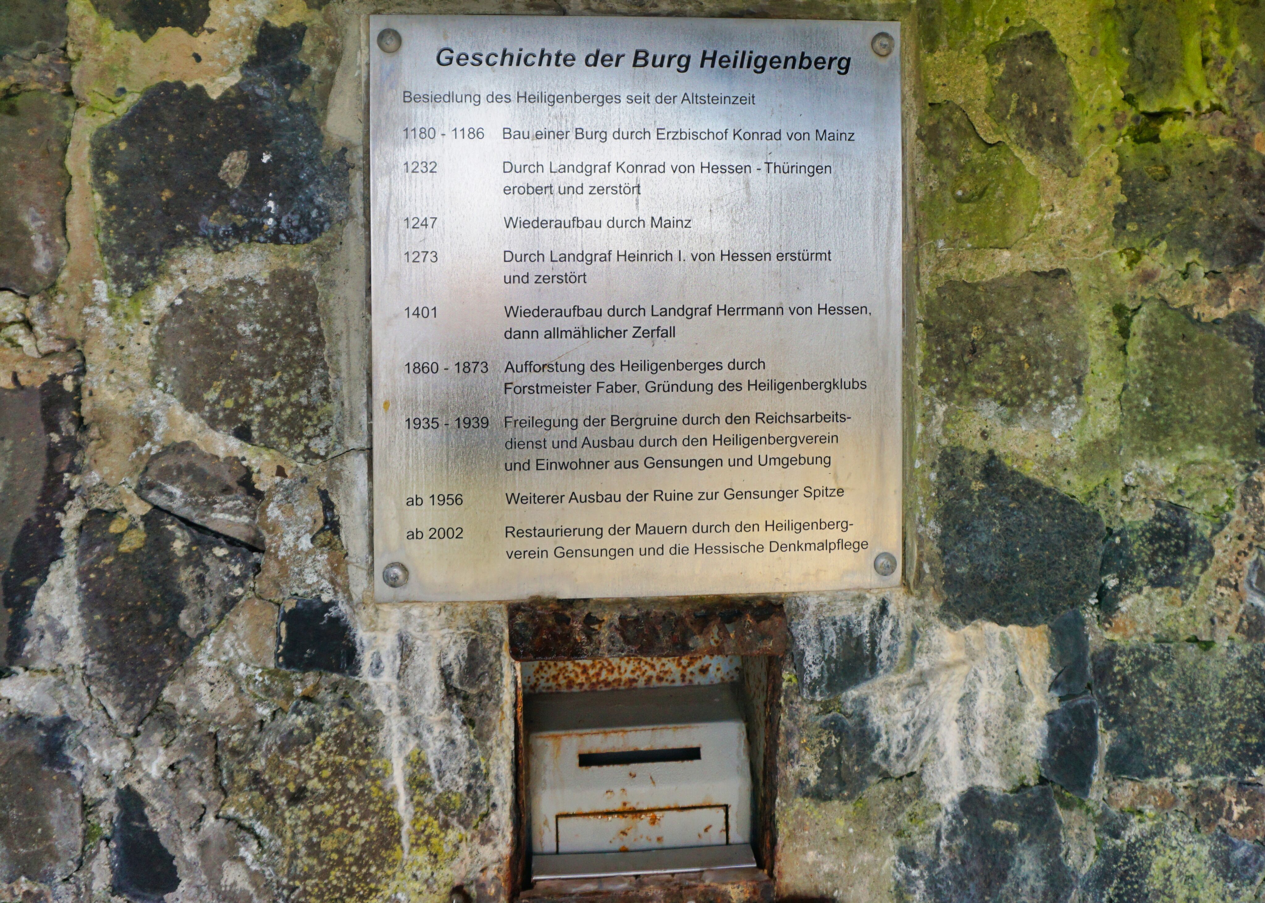 Infotafel am Bergfried der Burg Heiligenberg, Felsberg.