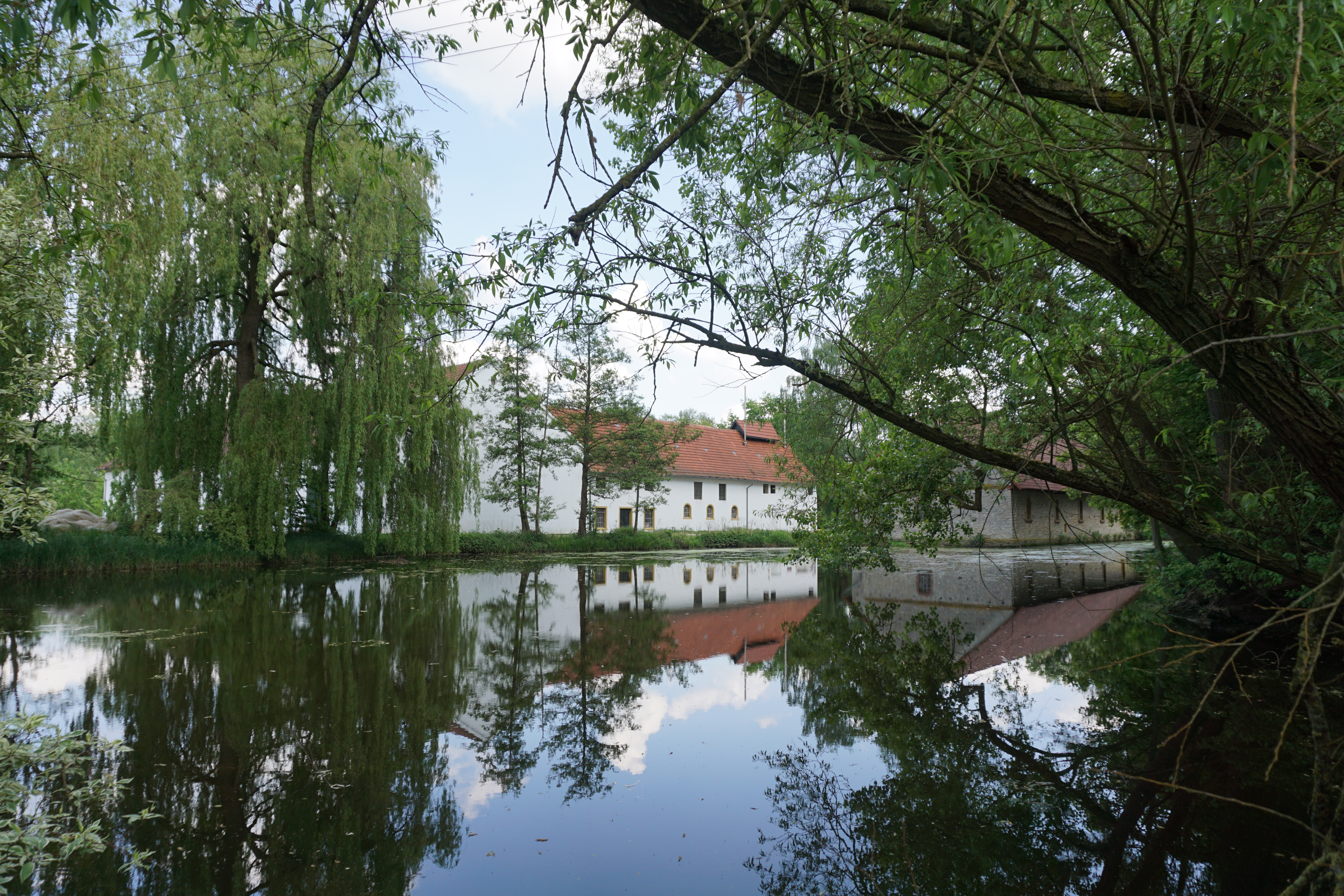 Alte Wassermühle zu Bentrup mit Teich.
