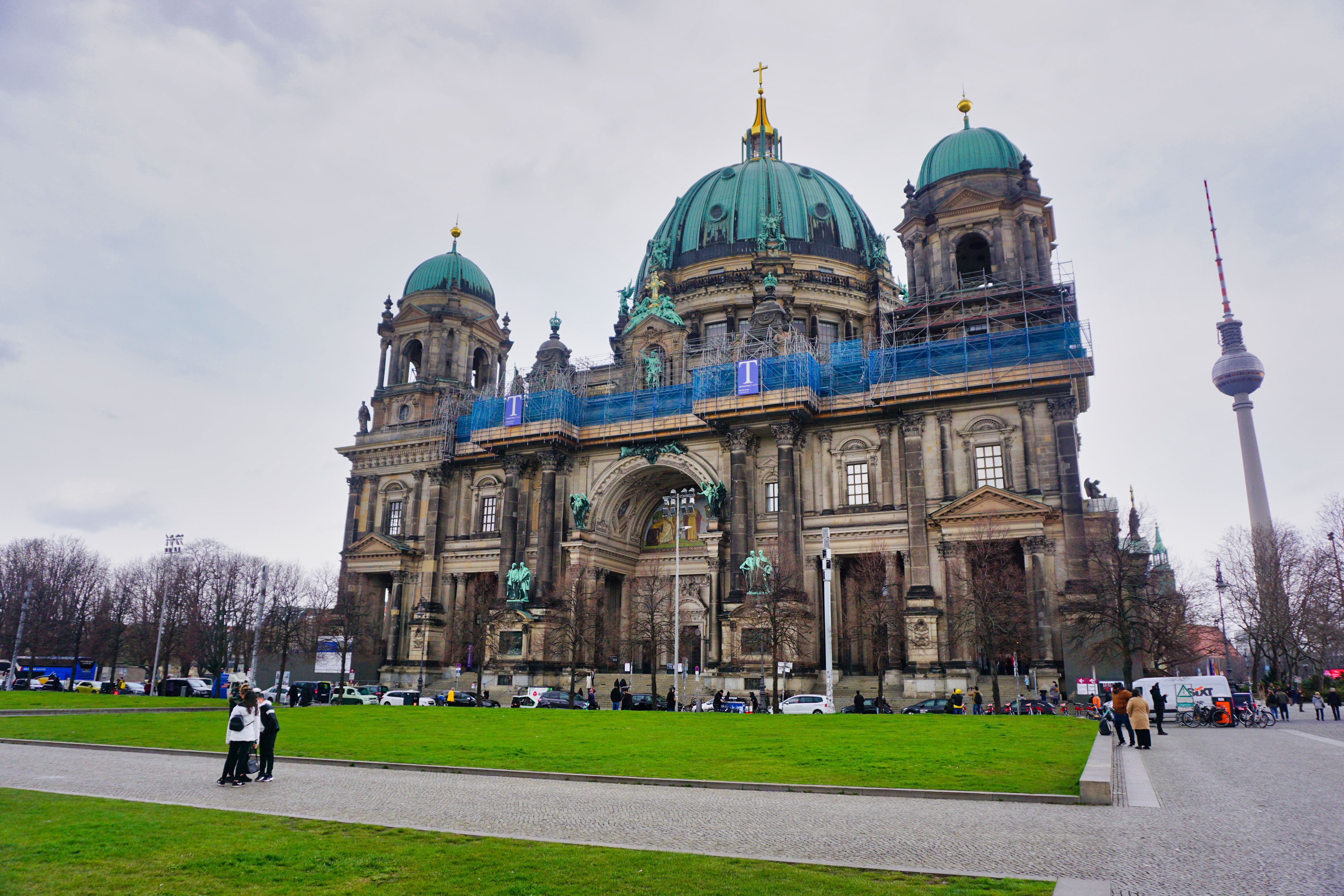 Der Berliner Dom mit dem Fernsehturm rechts im Bild.