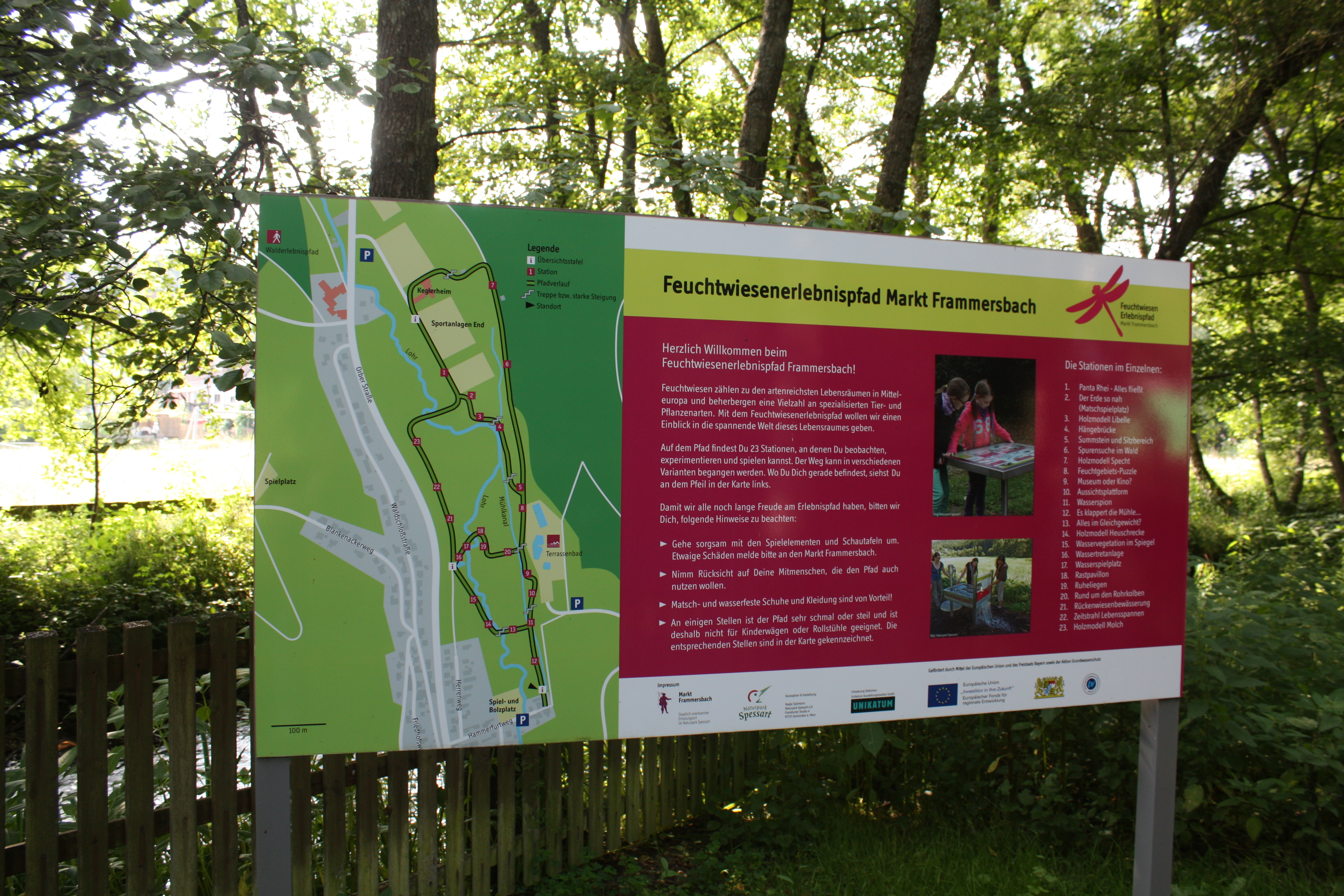 Info am Eingang Feuchtwiesenerlebnispfad, Markt Frammersbach.
