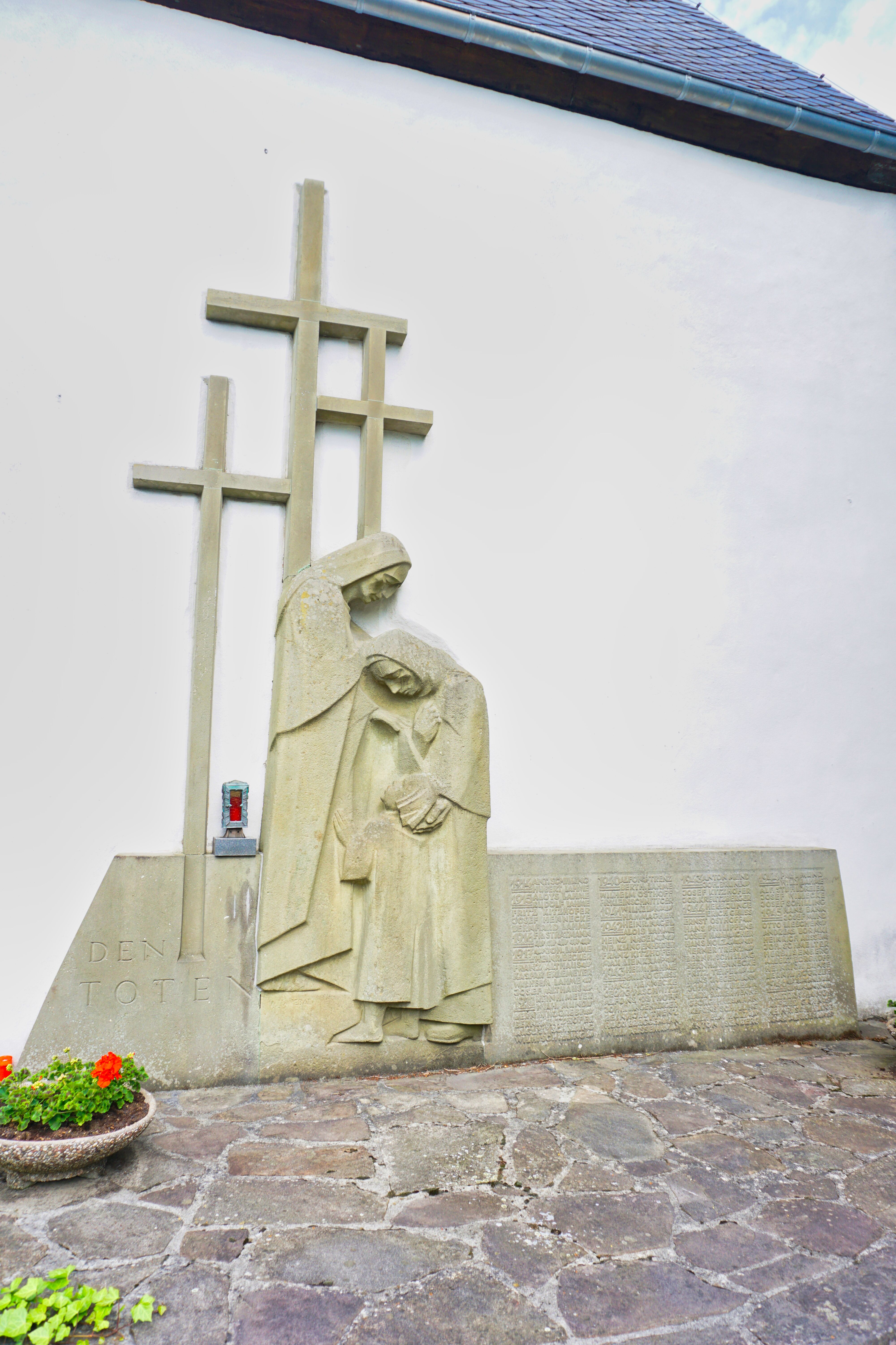 Kriegerdenkmal an der Außenfassade der Kirche Mariä Heimsuchung in Hoppecke, Brilon.