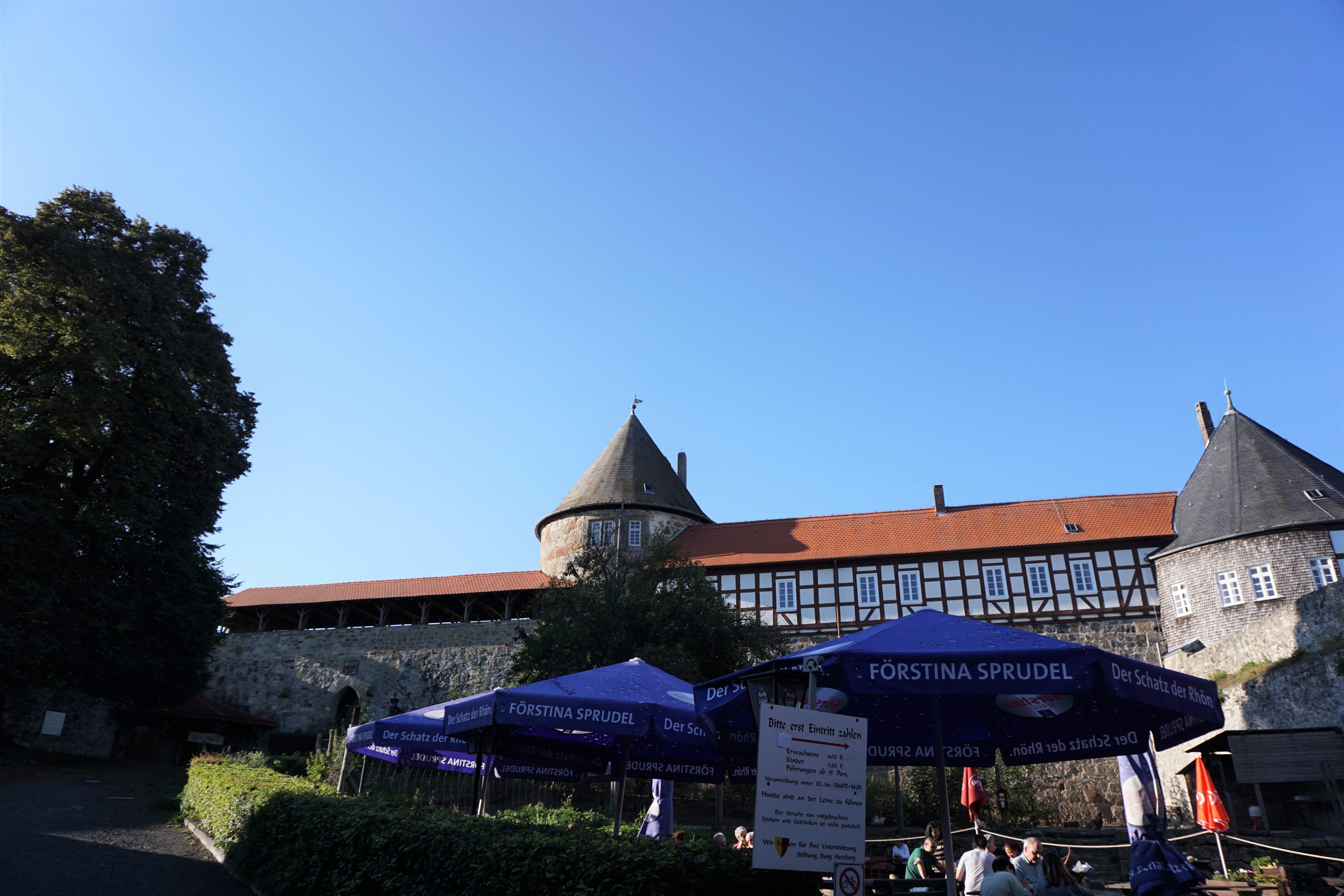 Biergarten im Hof der Vorburg von Burg Herzberg.