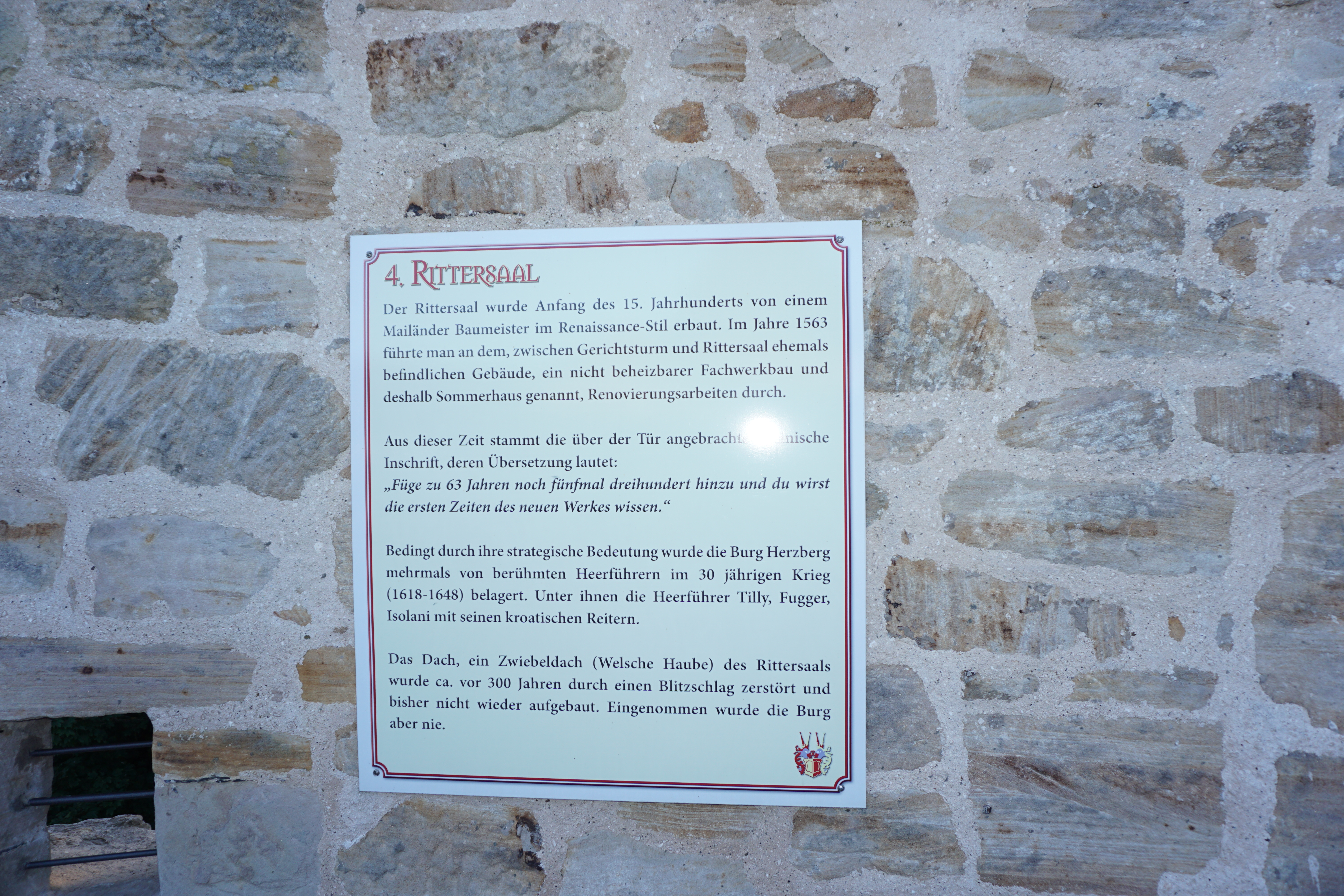 Info-Tafel Rittersaal Burg Herzberg.