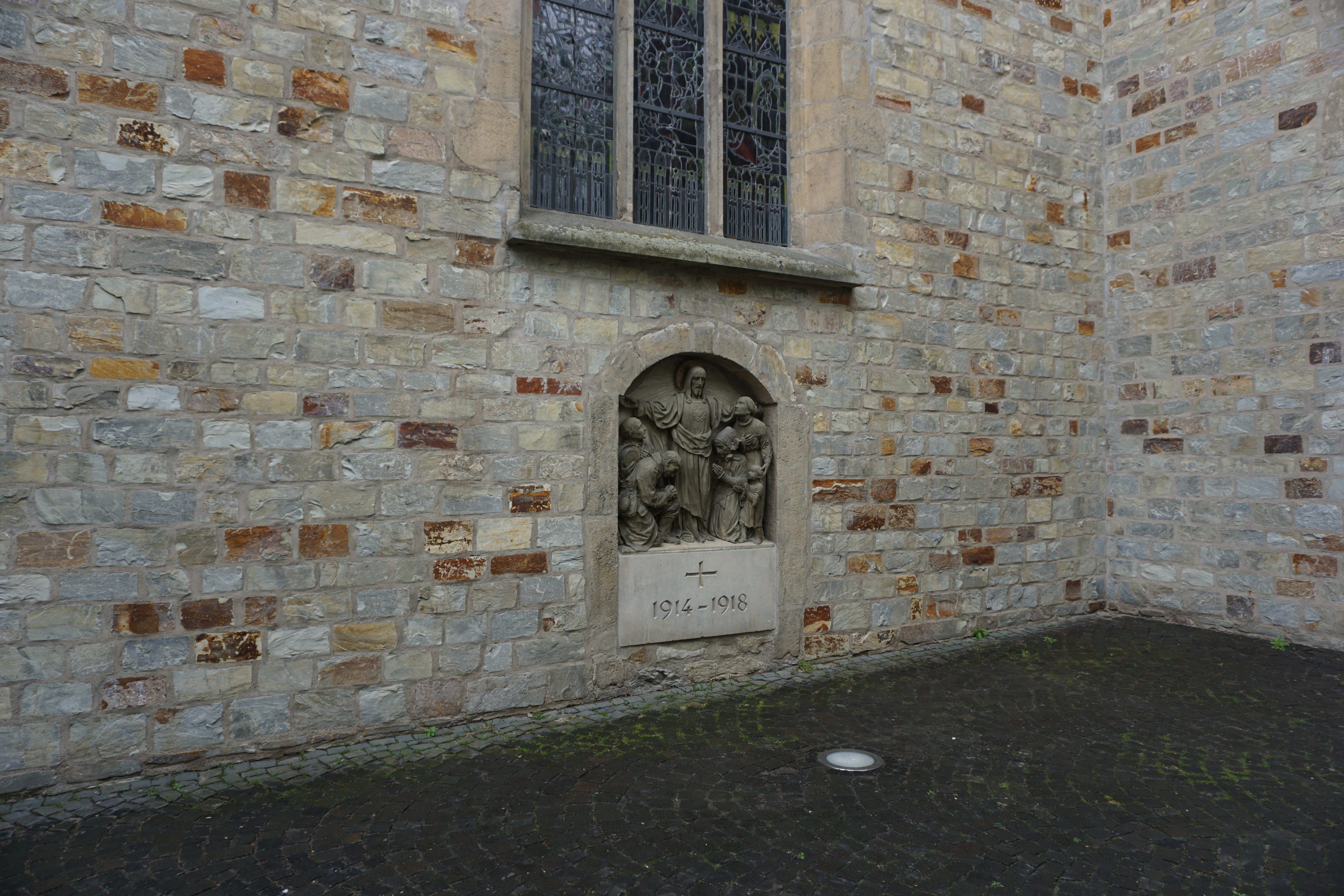 Denkmal an der Außenmauer der Kirche St. Johannes Baptist, Delbrück.