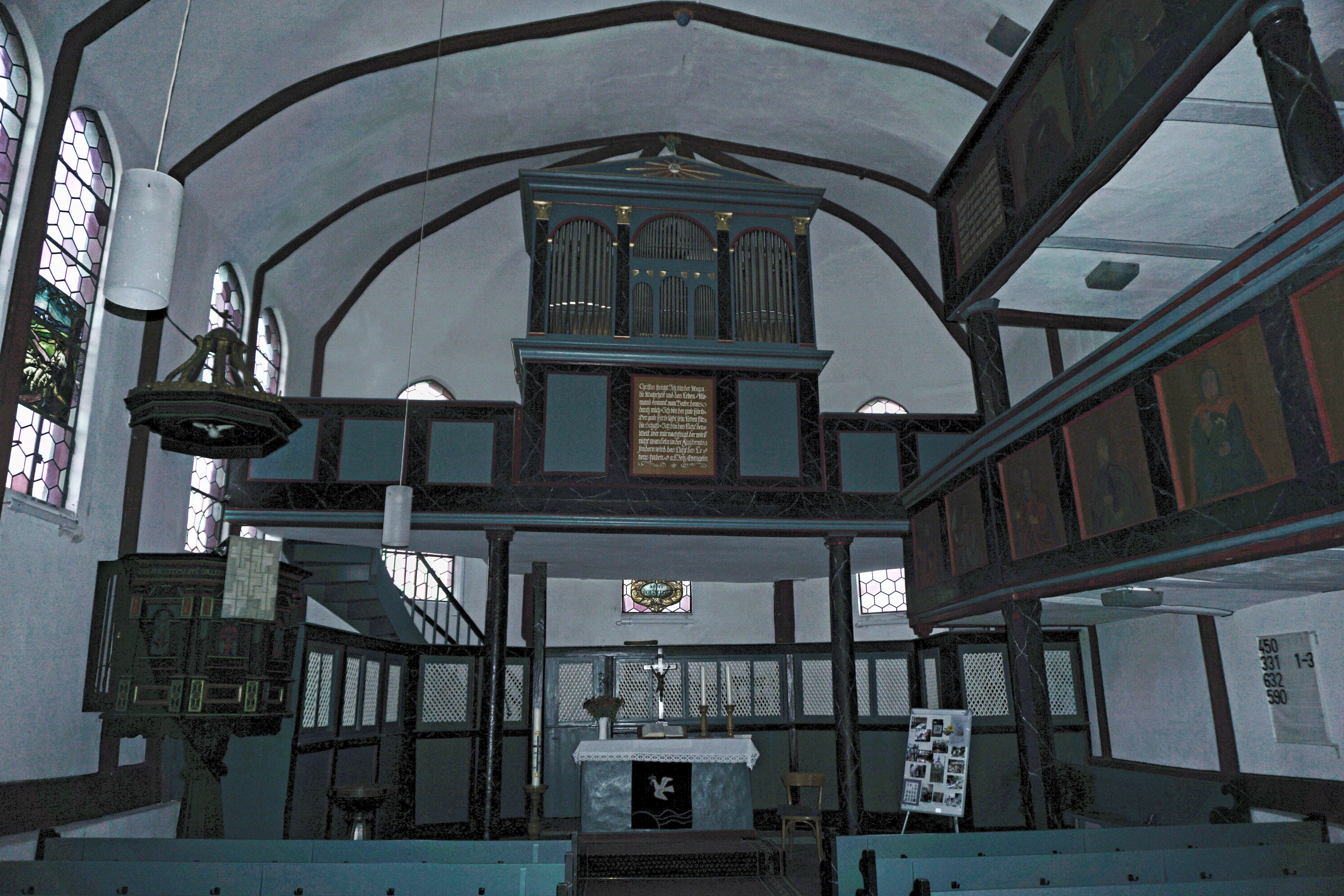 Altar der evangelischen Fachwerkkirche Stumpertenrod, Feldatal.