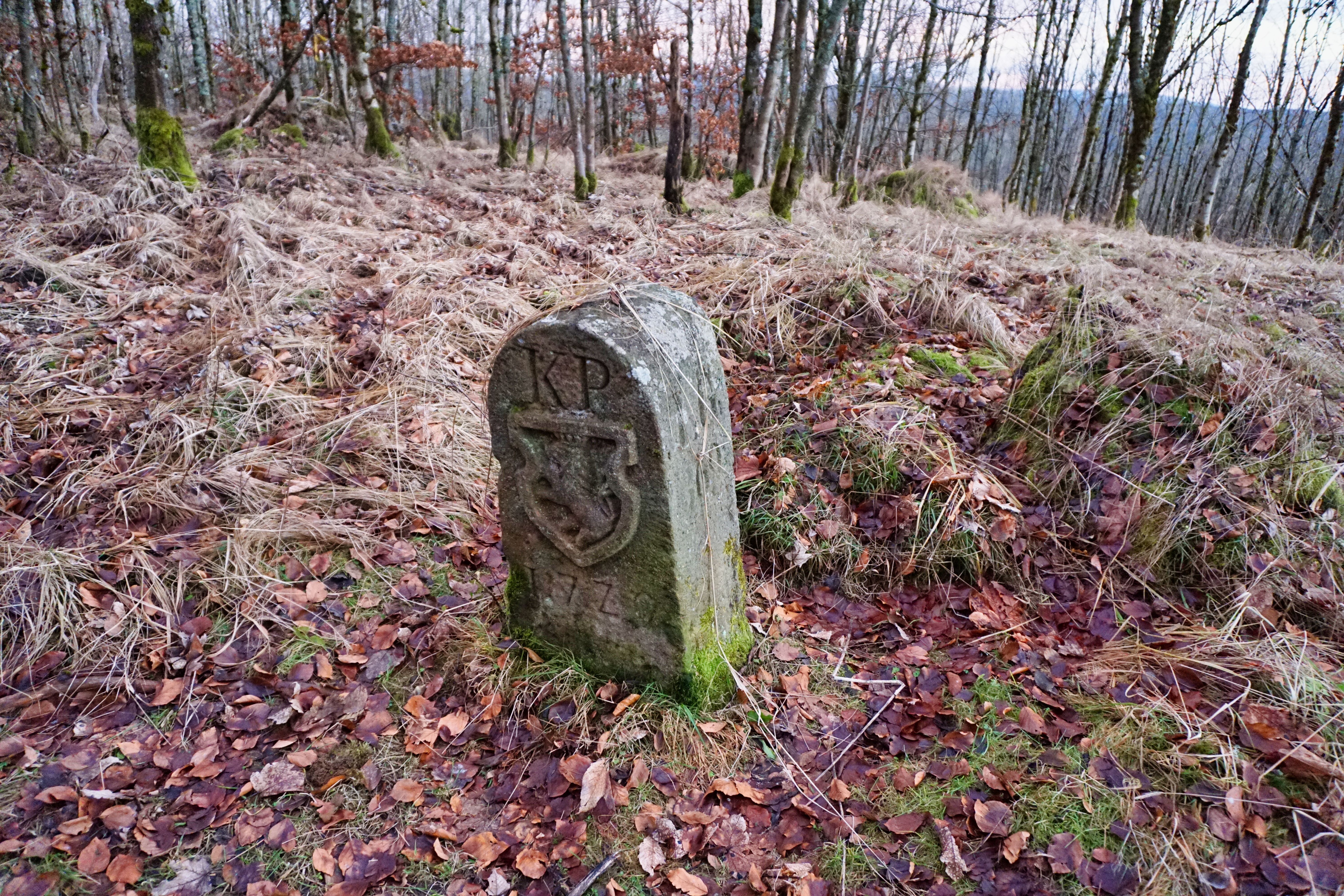 Grenzsteine am Wanderweg Wasserscheide Motten.