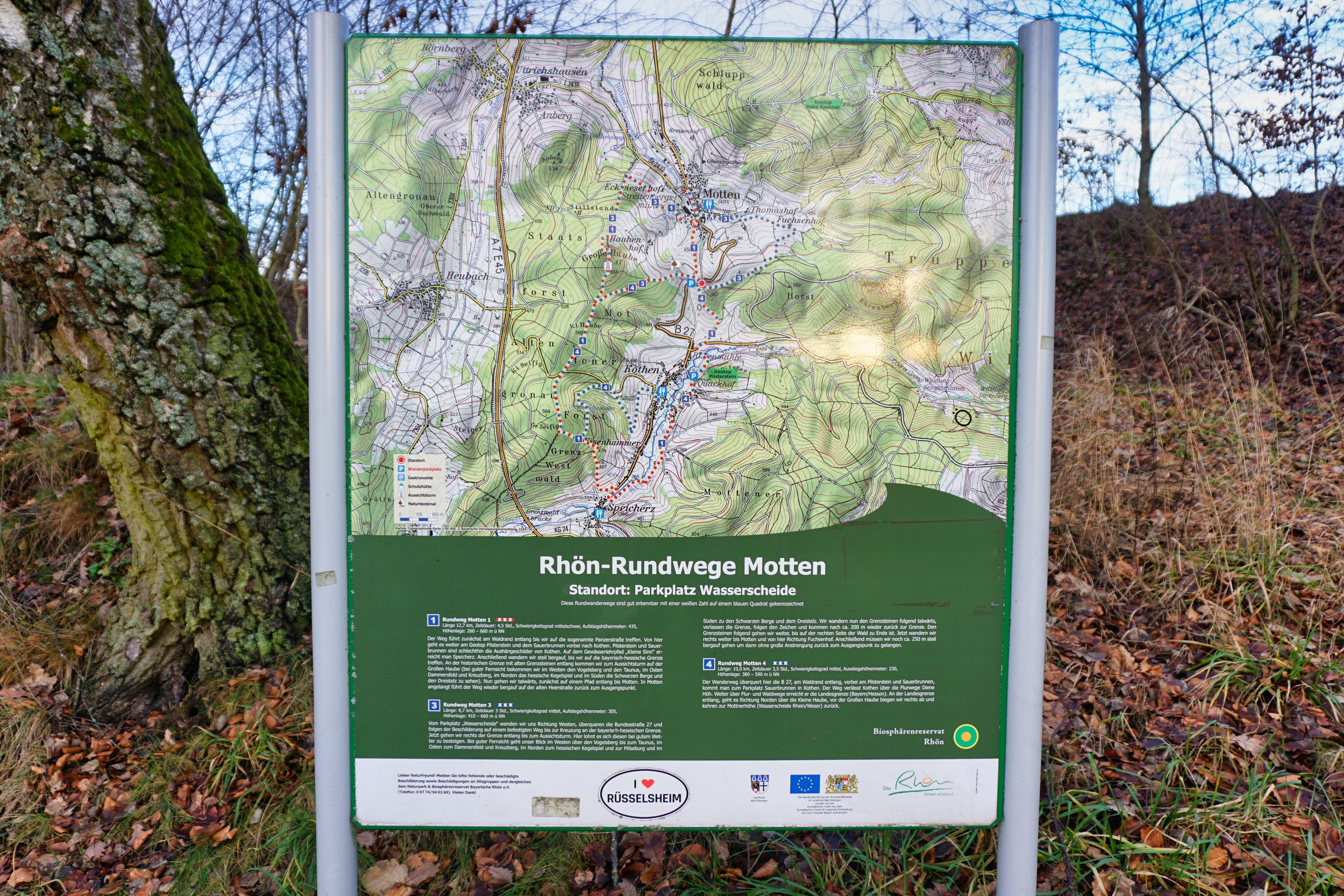 Info-Tafel direkt am Parkplatz Wasserscheide Motten.