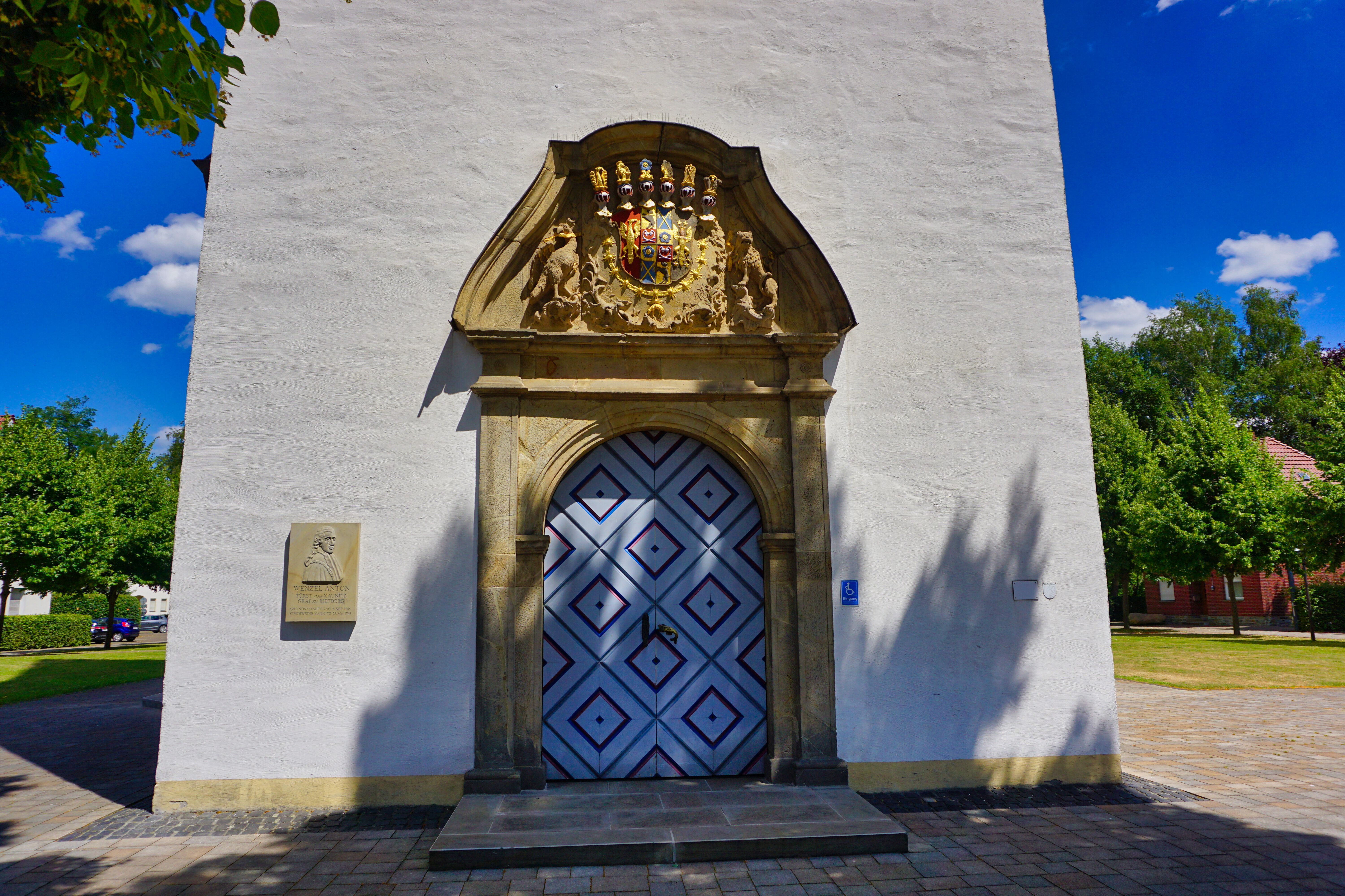 Eingangsportal der St. Maria Immaculata-Kirche in Kaunitz, Verl.