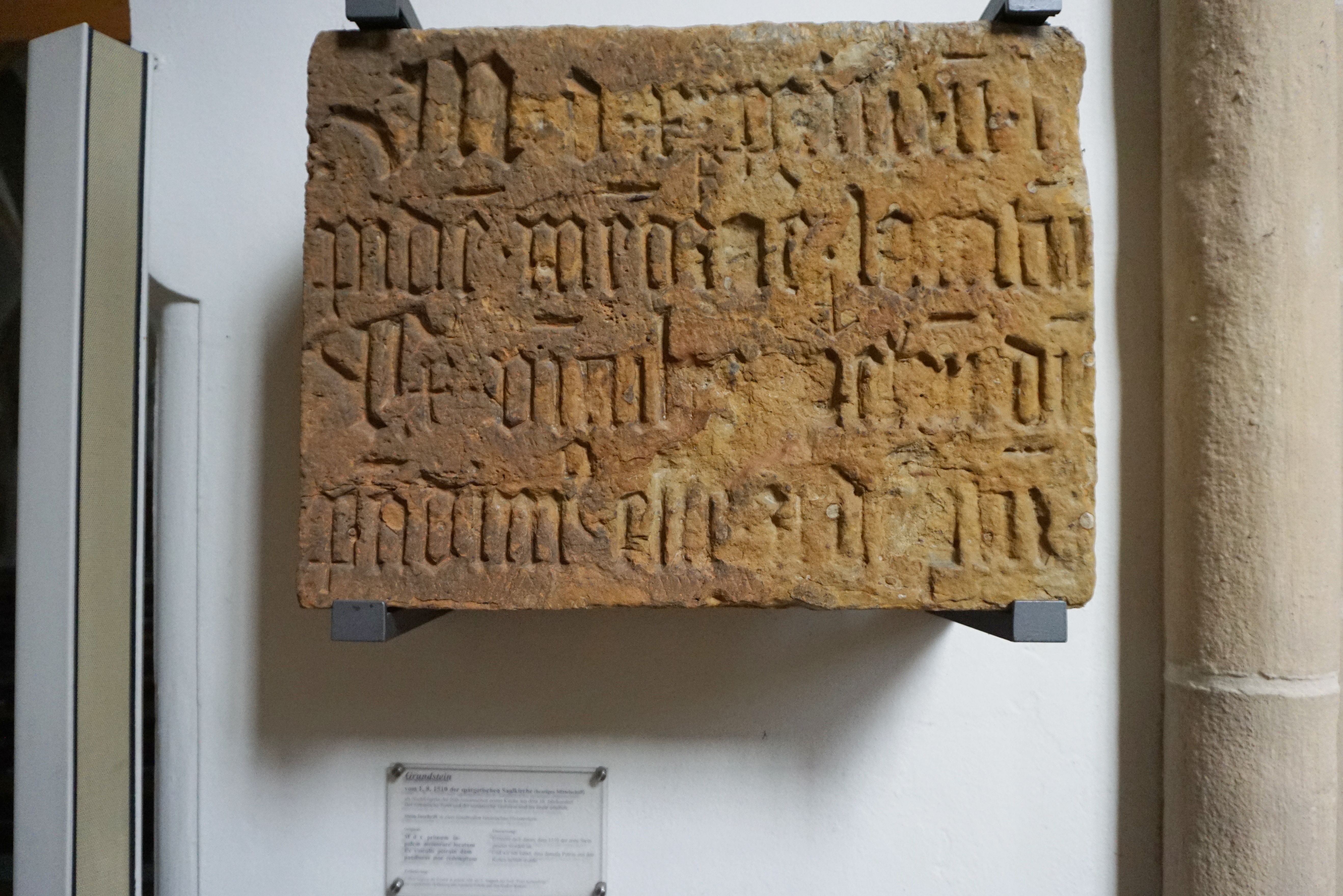 Grundstein vom 01.08.1510 der einst spätgotischen Saalkirche.