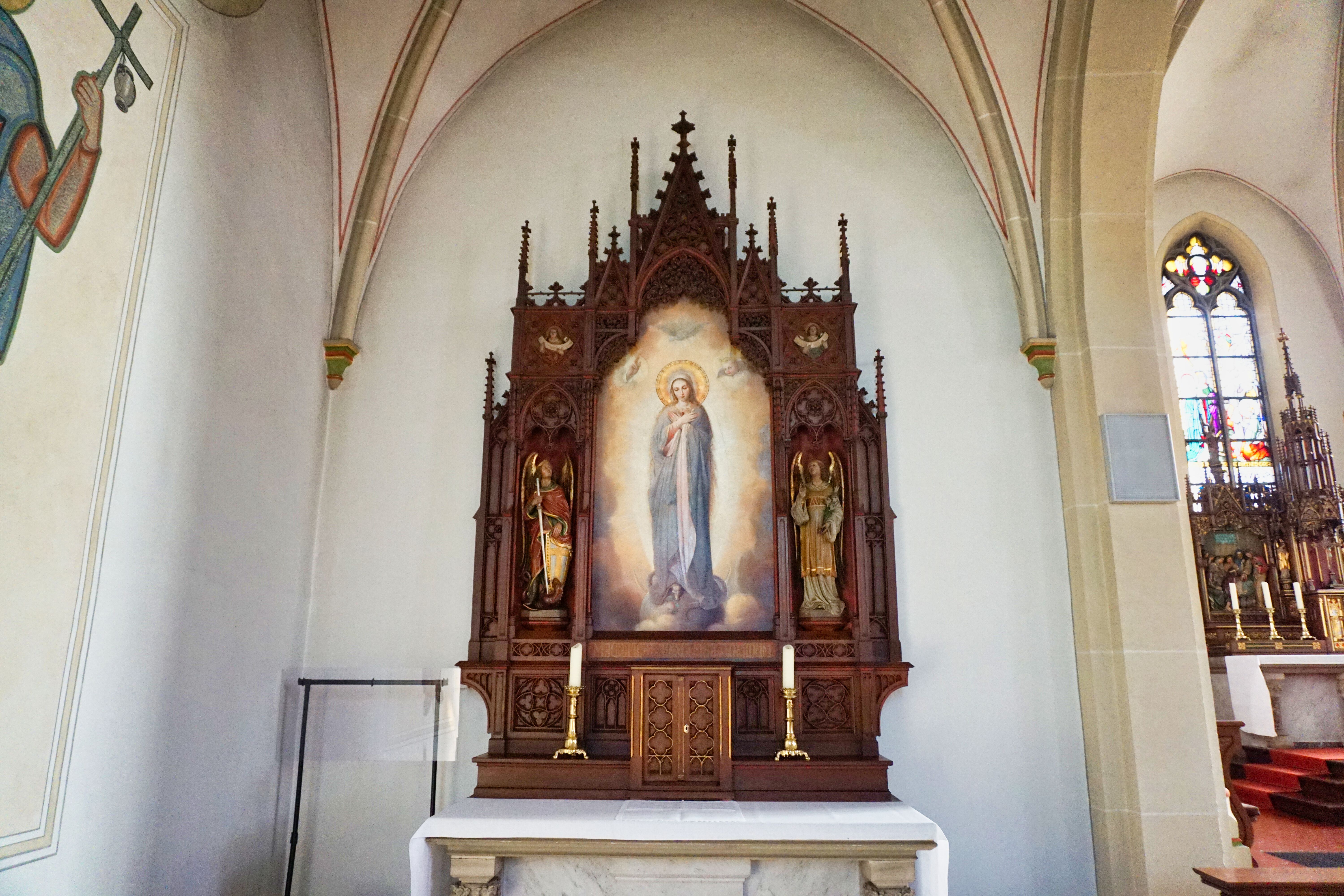 Hier Links neben dem Hochaltar des Chorraums.