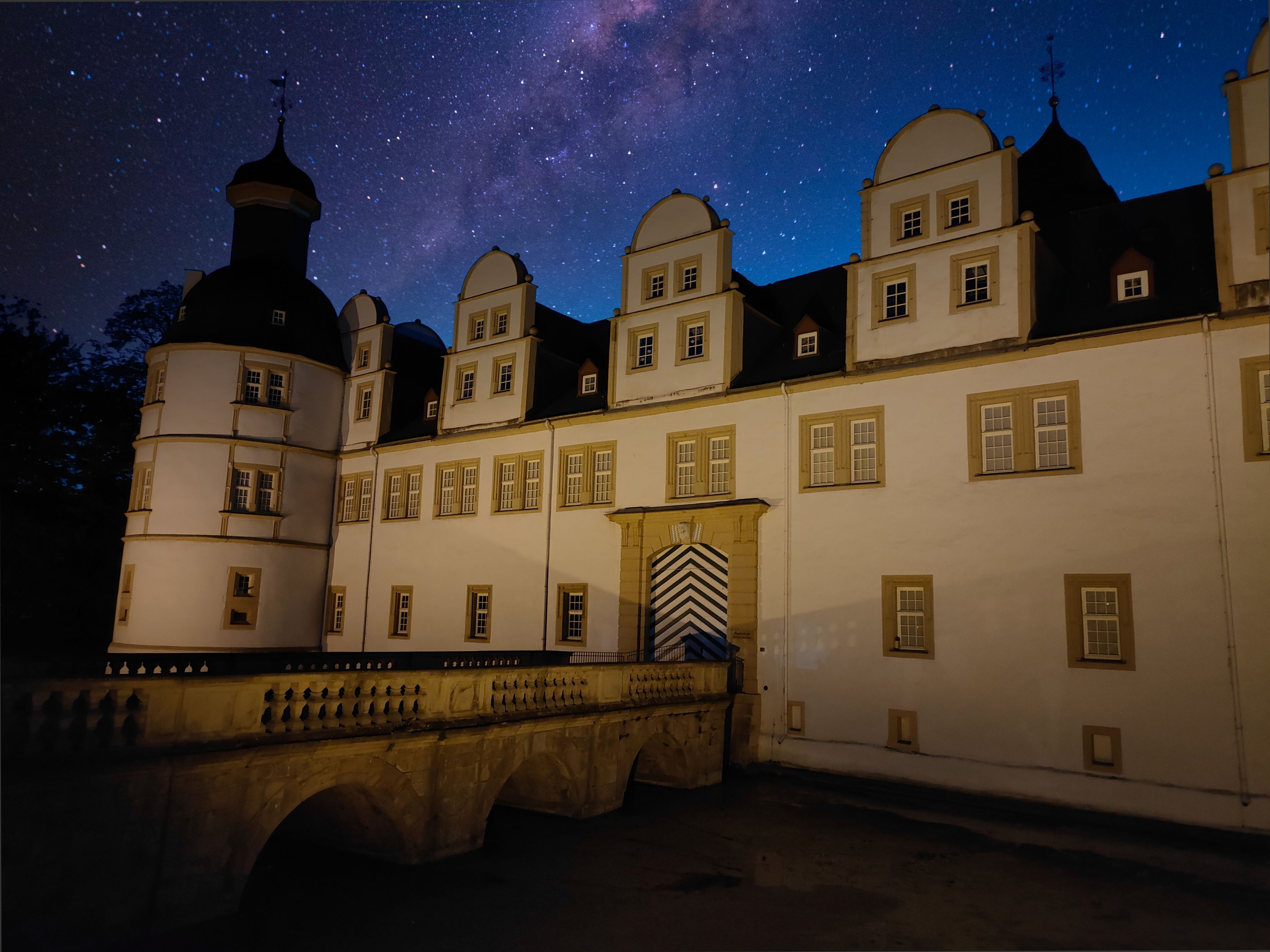 Schloss Neuhaus bei Nacht.