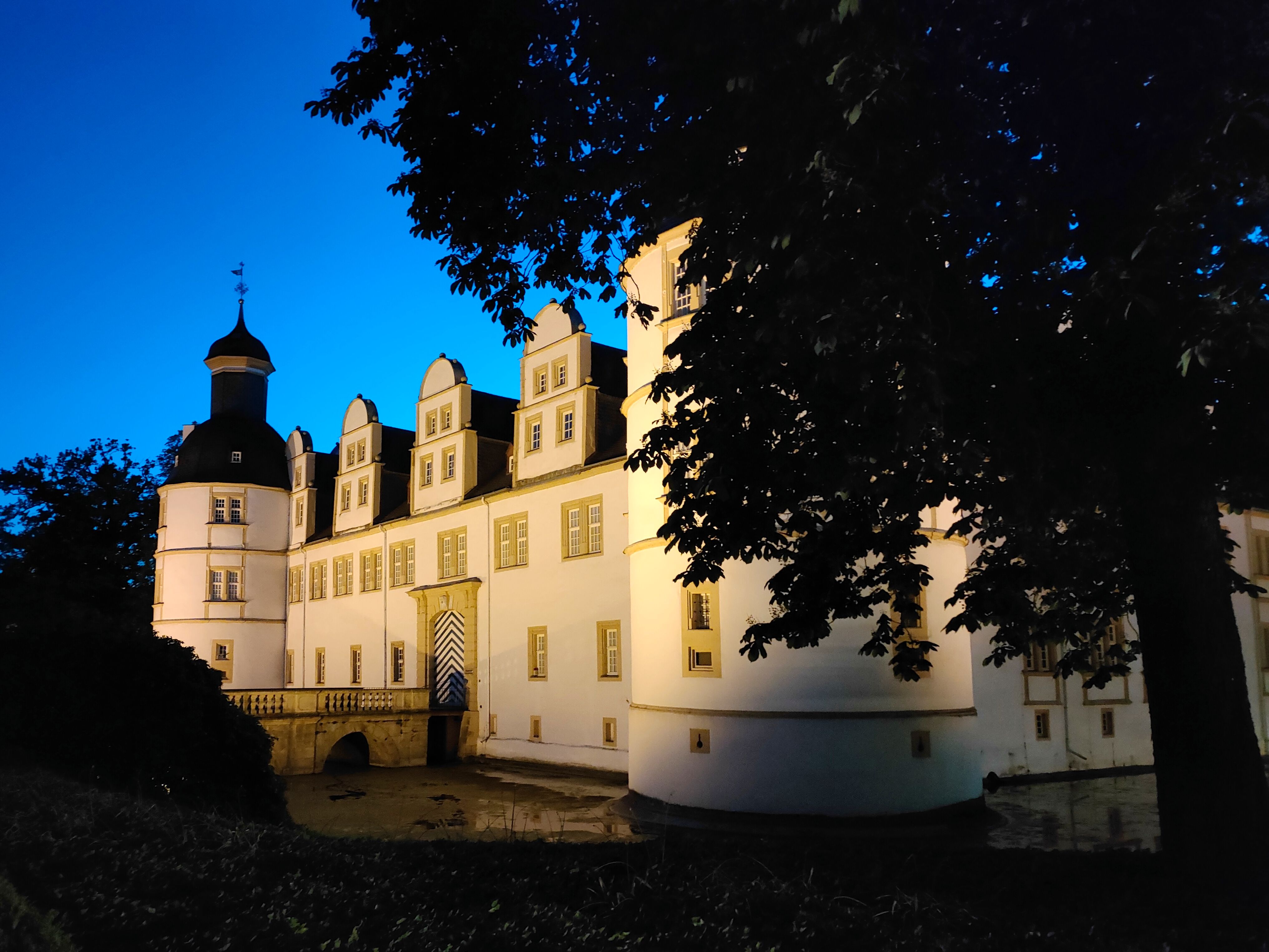 Schloss Neuhaus bei Nacht.