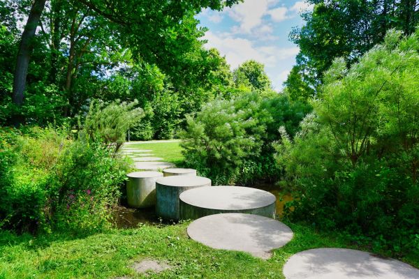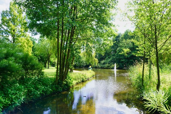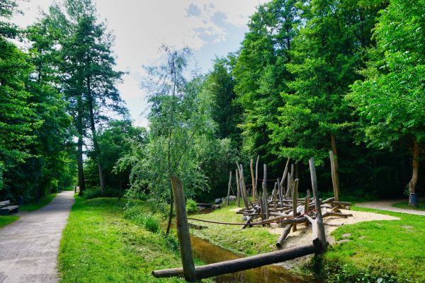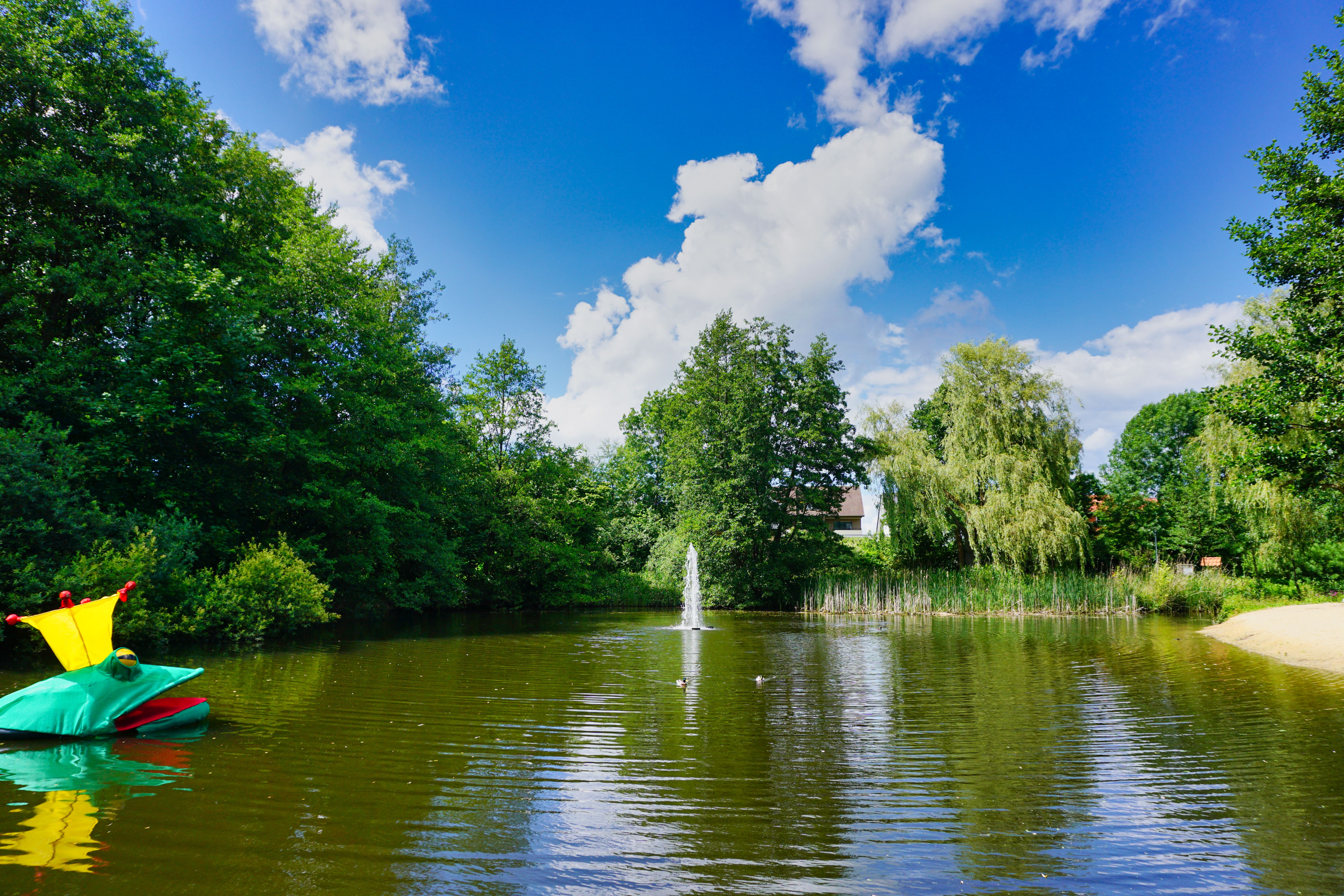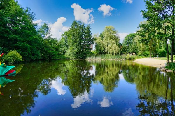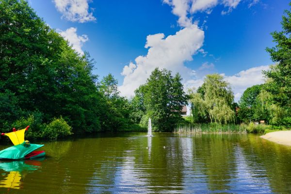 Der Bürgerpark von Steinhagen mit seinem kleinen Sandstrand, Teich mit Fischbesatz und kleinem Wasserspiel.