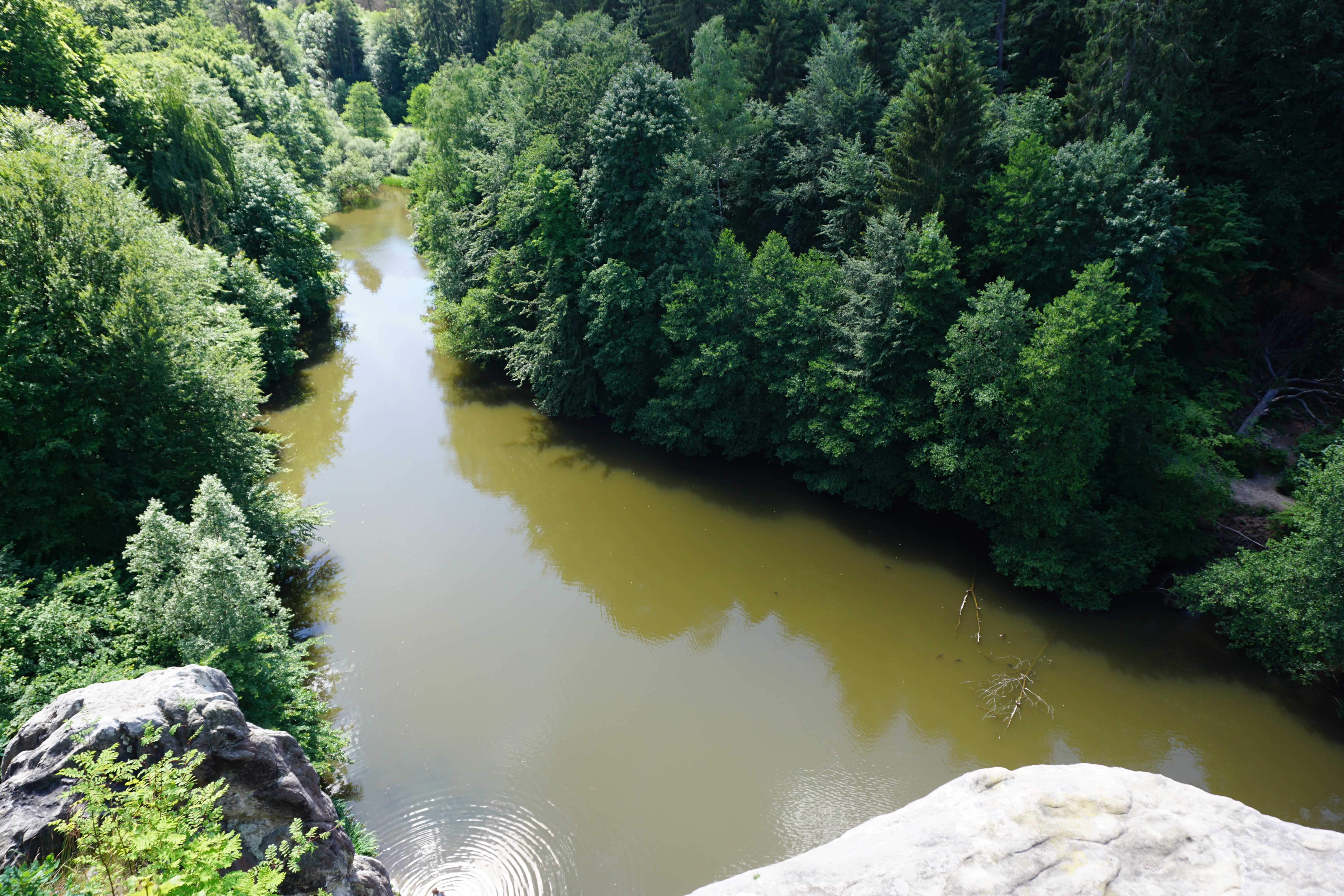 Ausblicke von den Externsteinen auf den Wiembecketeich.