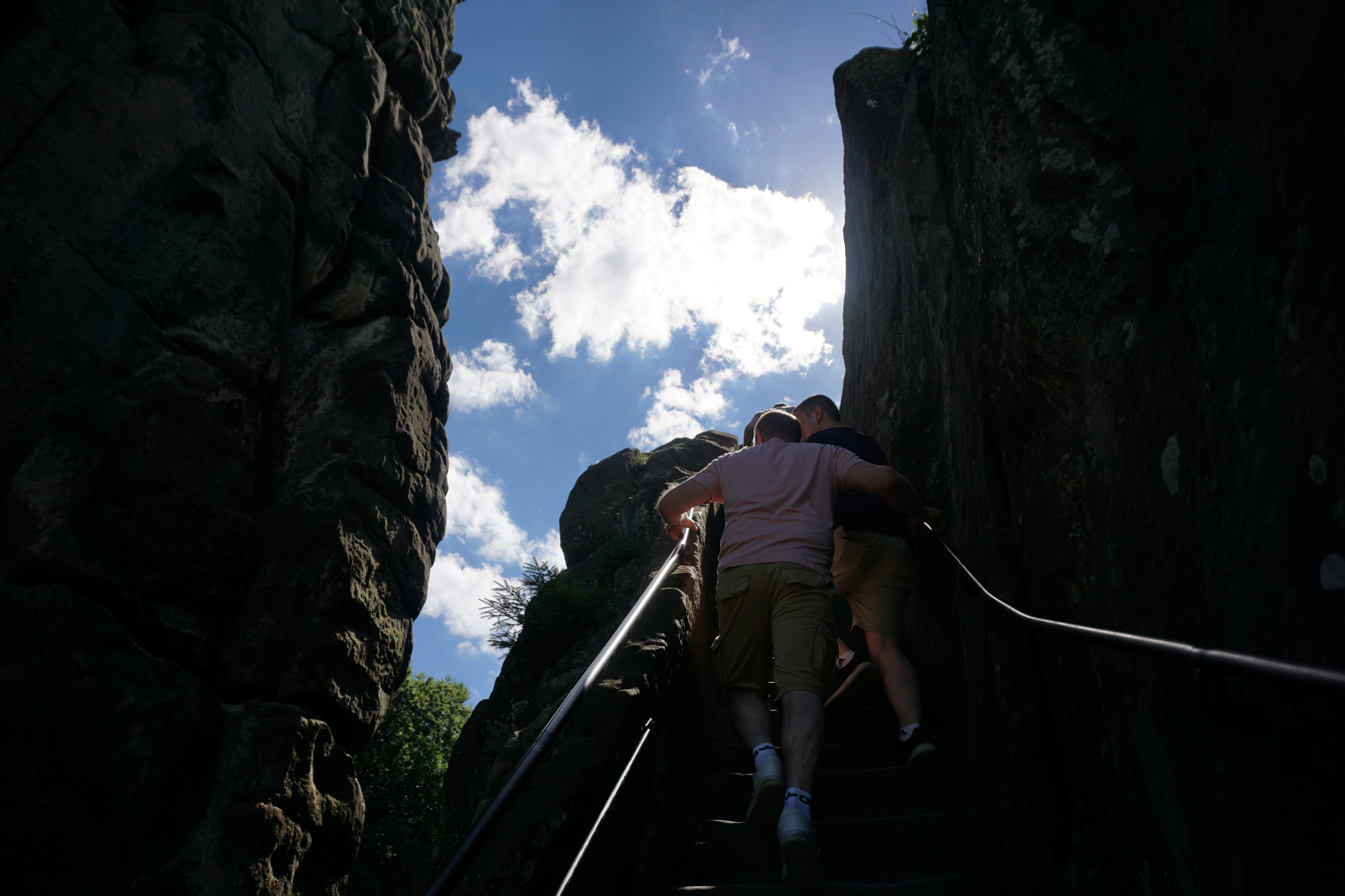 Die Stufen an den Externsteinen sind ein wenig eng...