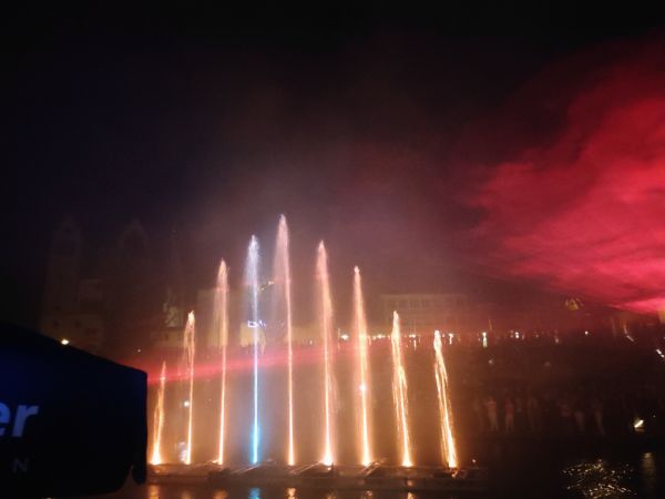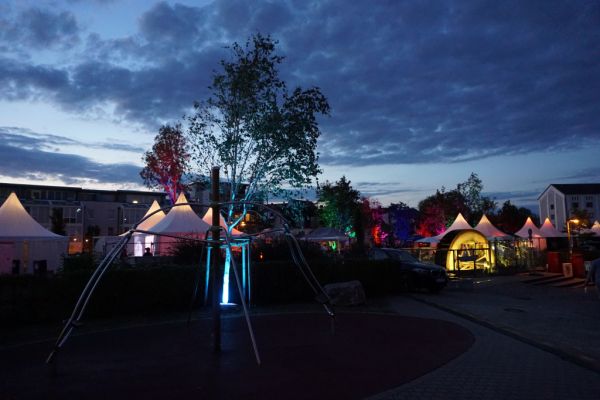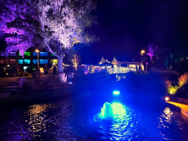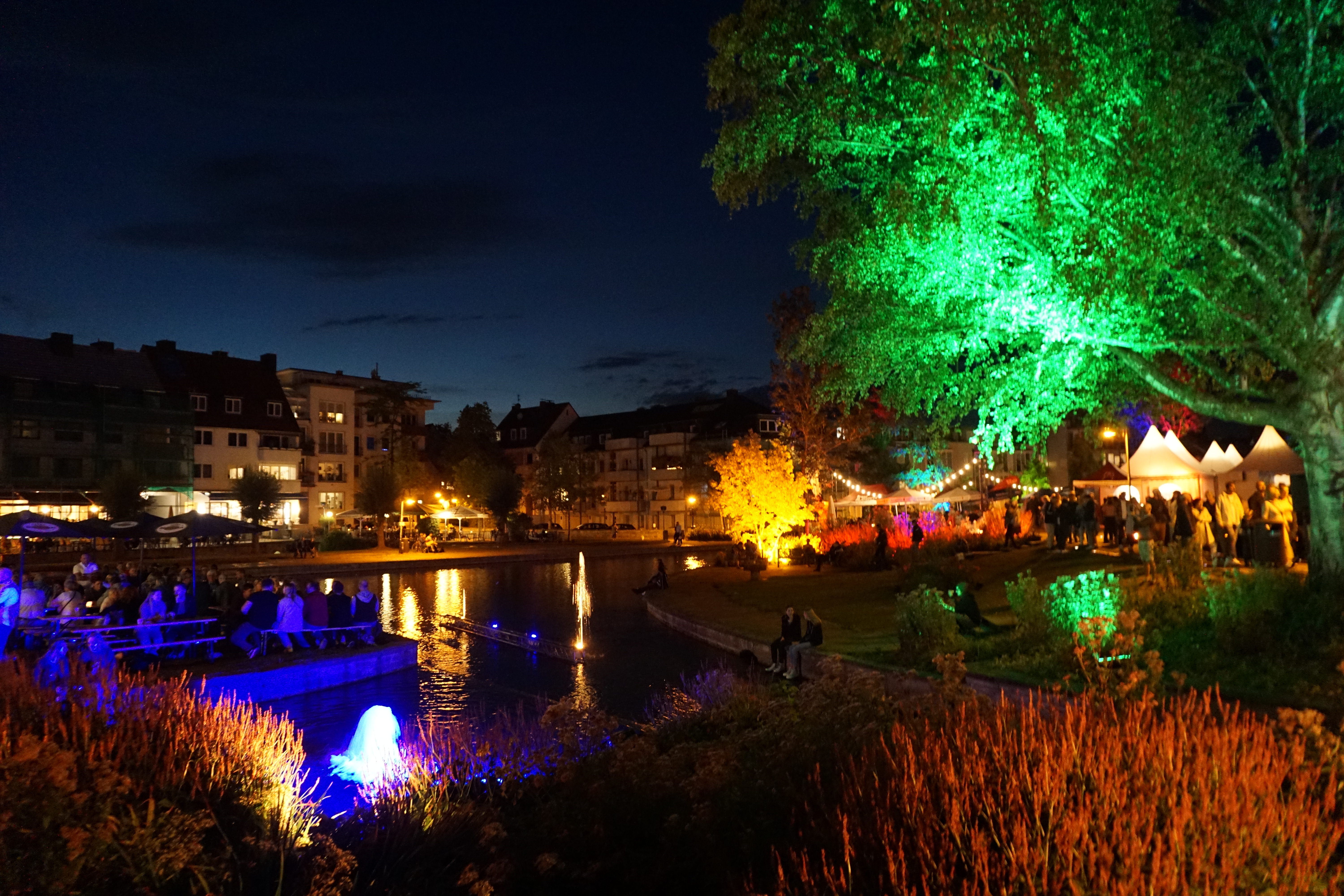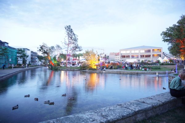 Der Park um das Paderquellgebiet wird im Zusammenspiel von Feuer, Wasser, Licht und Videotechnik in Szene gesetzt.