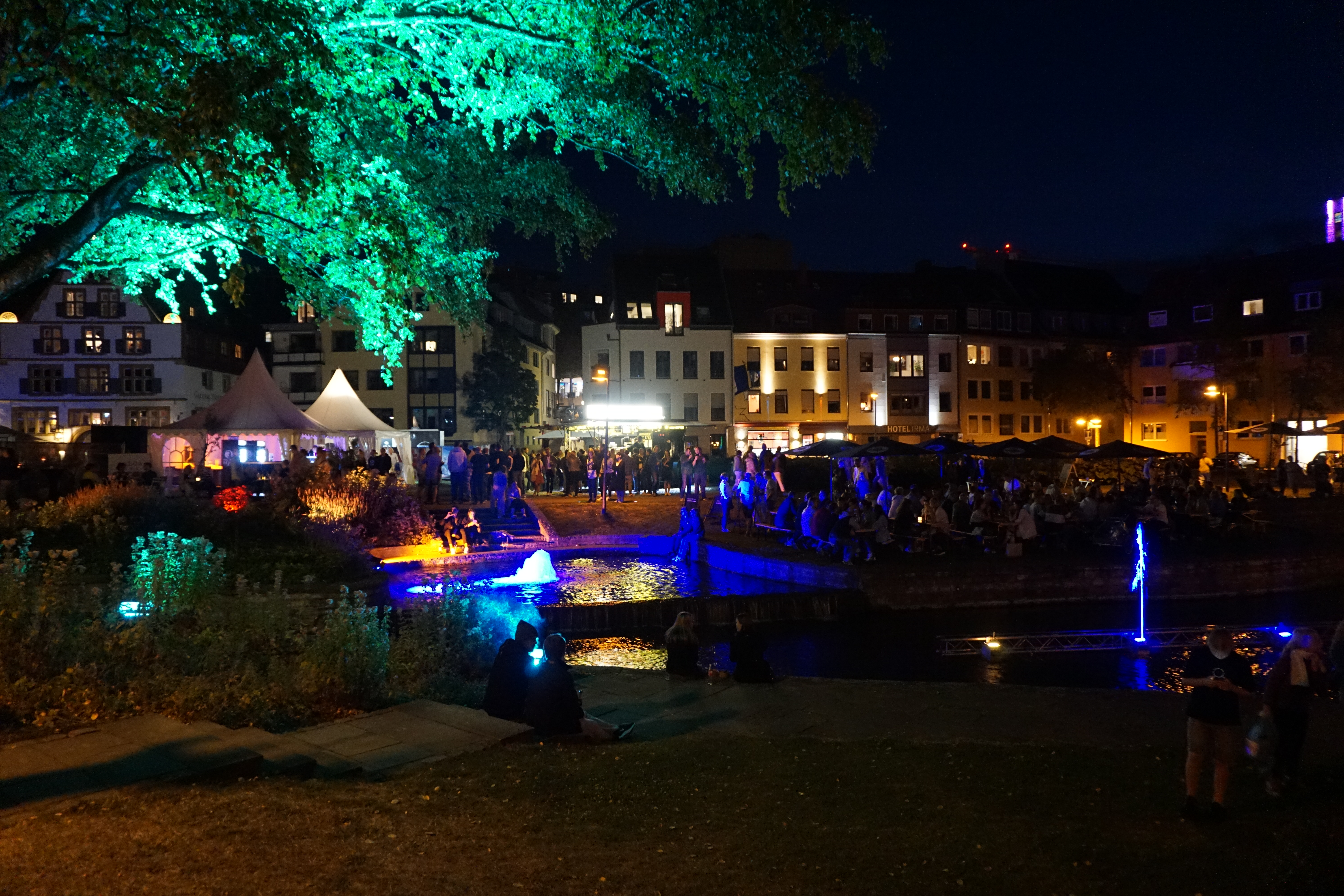 Der Park um das Paderquellgebiet wird im Zusammenspiel von Feuer, Wasser, Licht und Videotechnik in Szene gesetzt.
