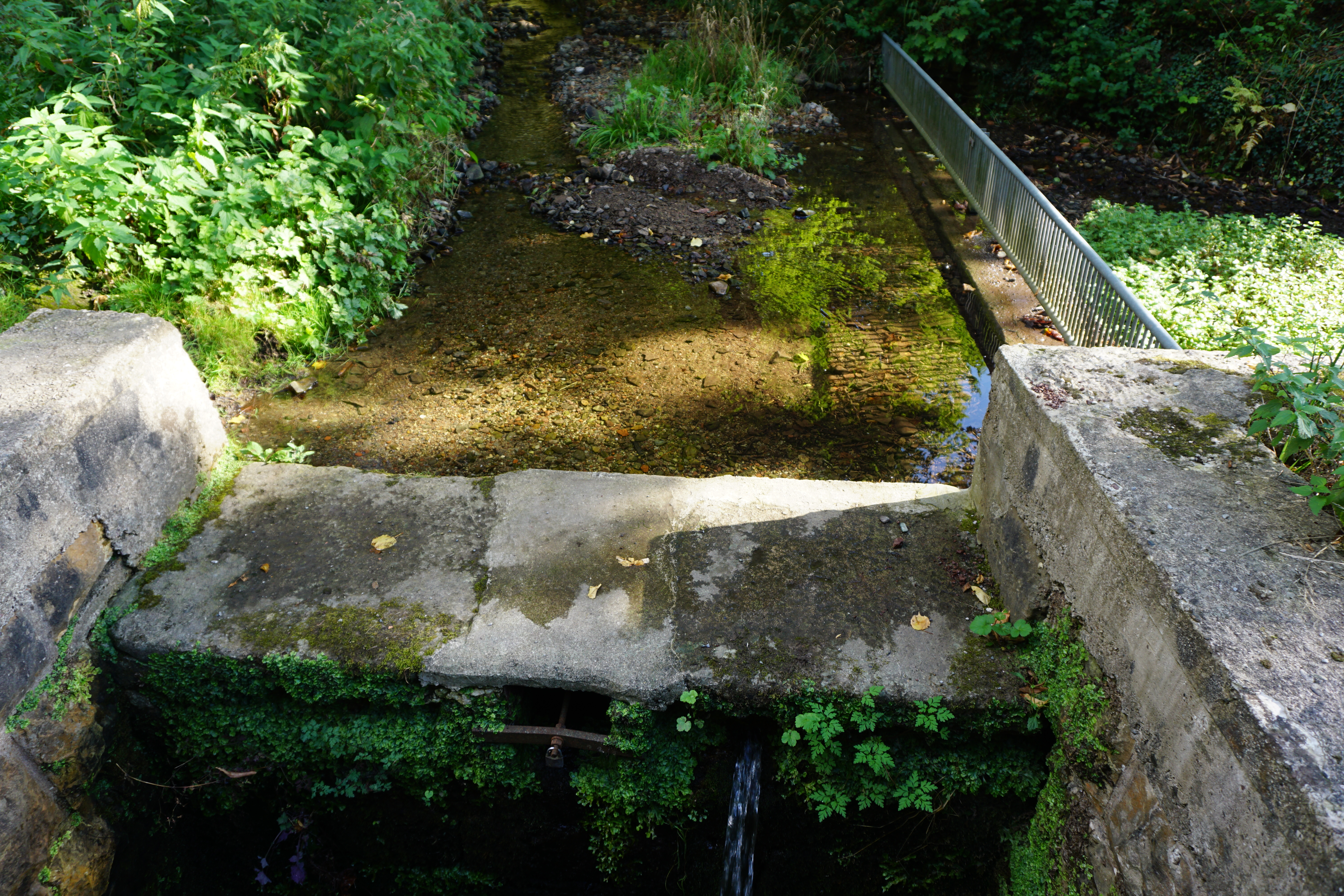 Hier in südlicher Richtung am Schloss Schieder die originalen Stützmauern und der heute damit verbundene Wassergraben.
