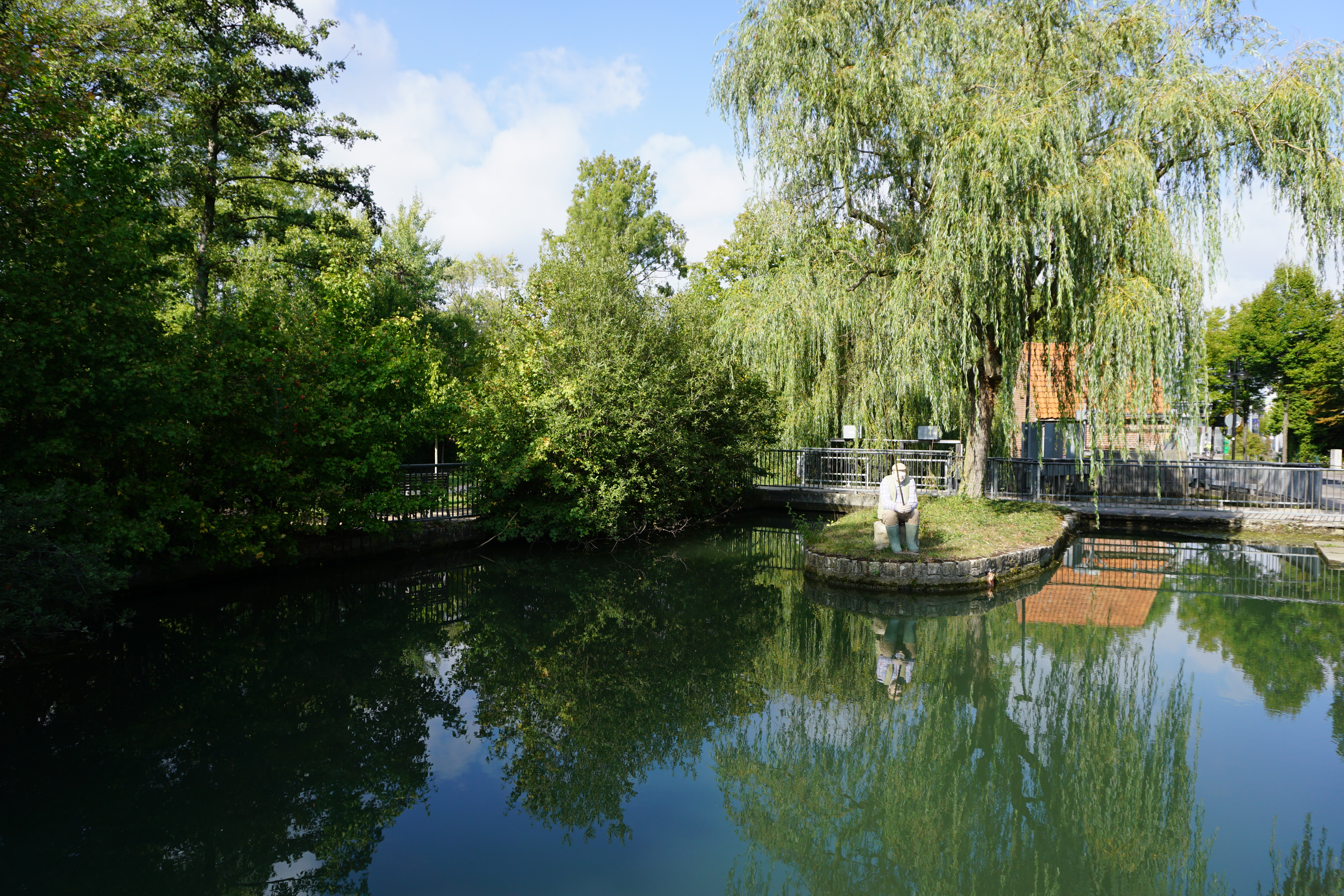 Hier am Rückstau der o.g. Mühle mit den Figuren (hierbei ein Angler) der Stadt Salzkotten.