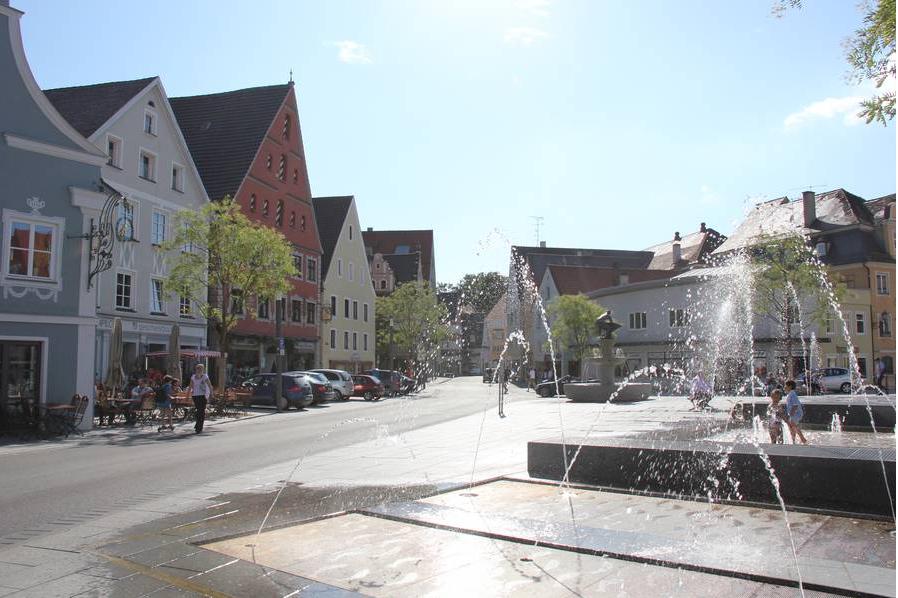 Der Brunnen "Stadtbachspur" am Schrannenplatz.