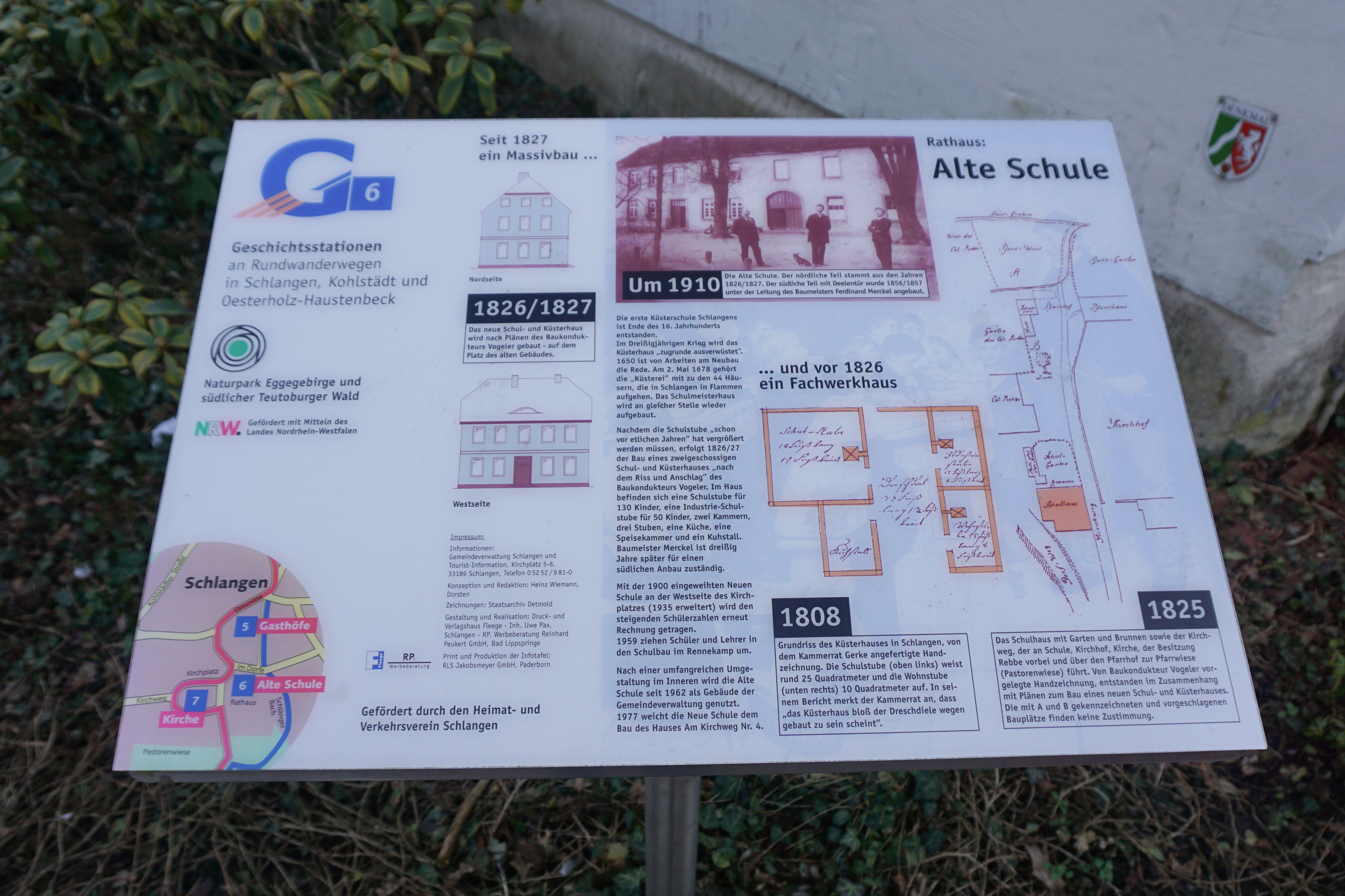 Infotafel über das Rathaus Schlangen.