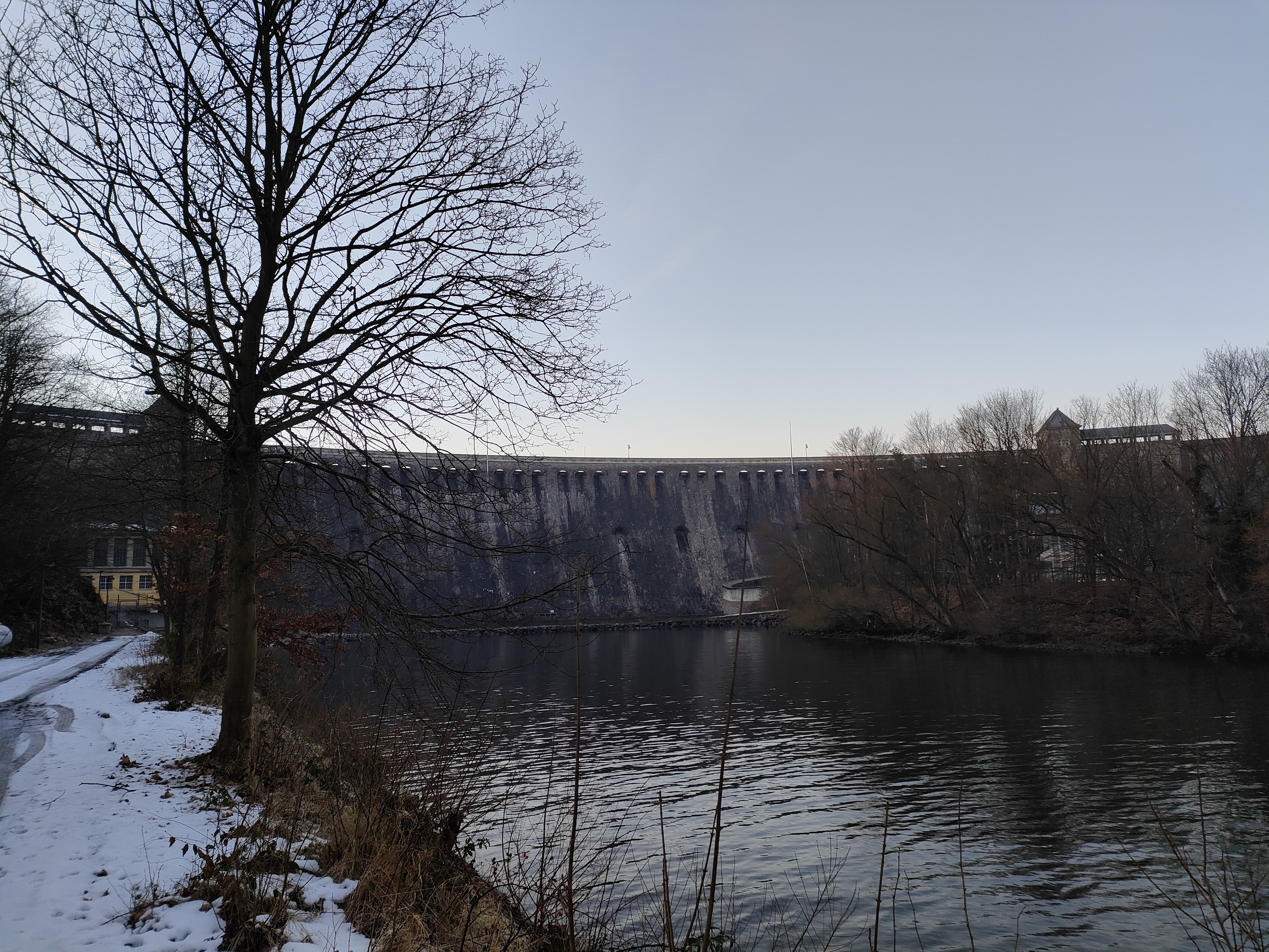 Edersee-Staumauer im Winter.
