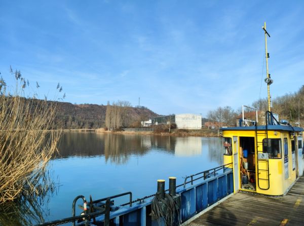 Auf der Saalefähre Brucke-Rothenburg.