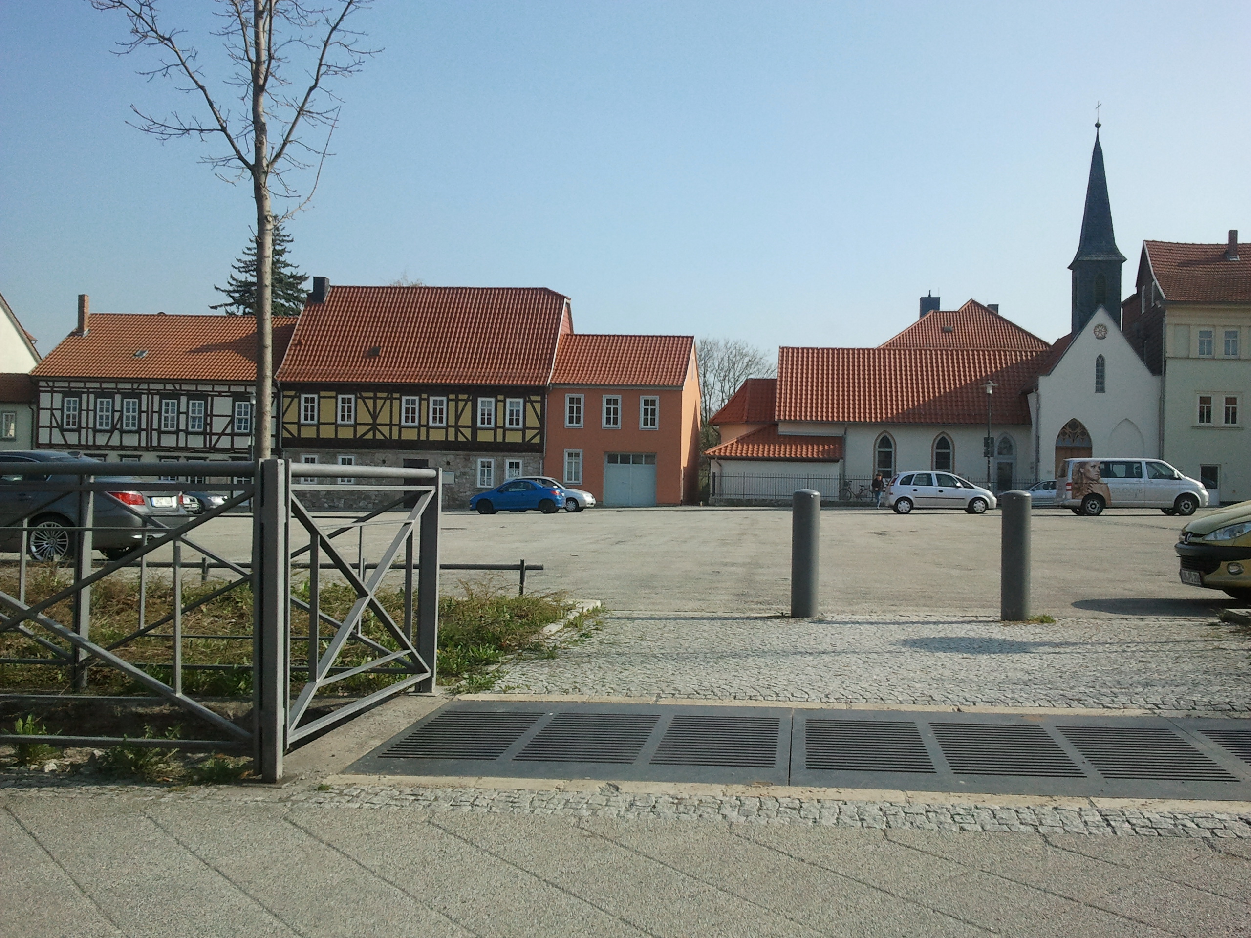 Auf dem Blobach (Platz vor der Wehranlage) Mühlhausen mit Bonifatiuskapelle.