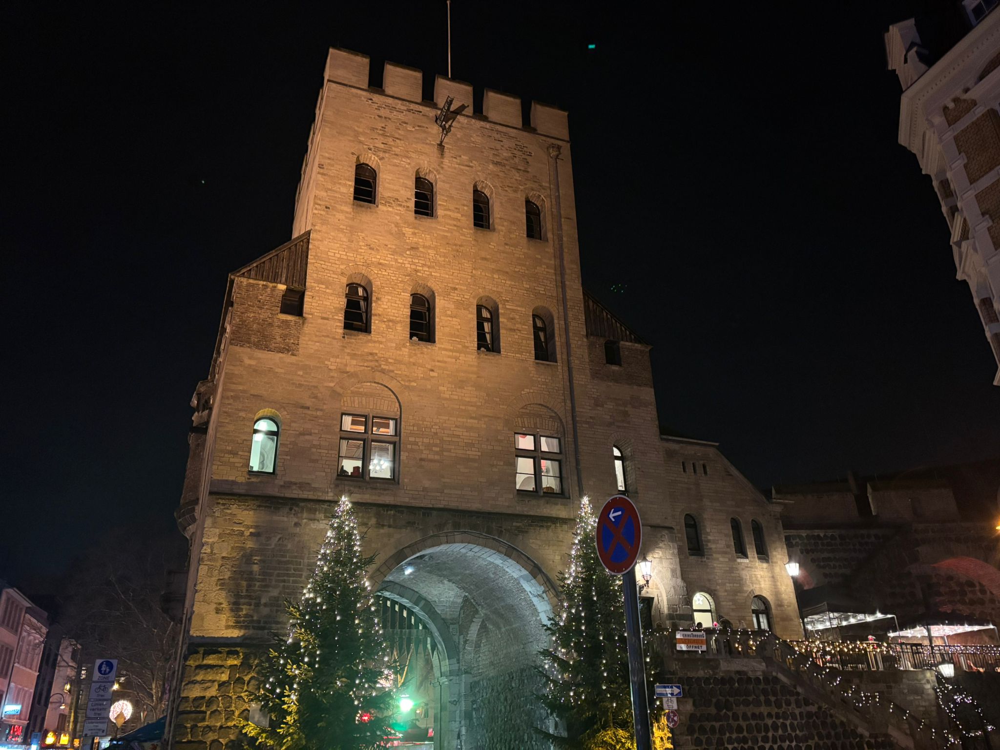 Severinstor in Köln bei Nacht.