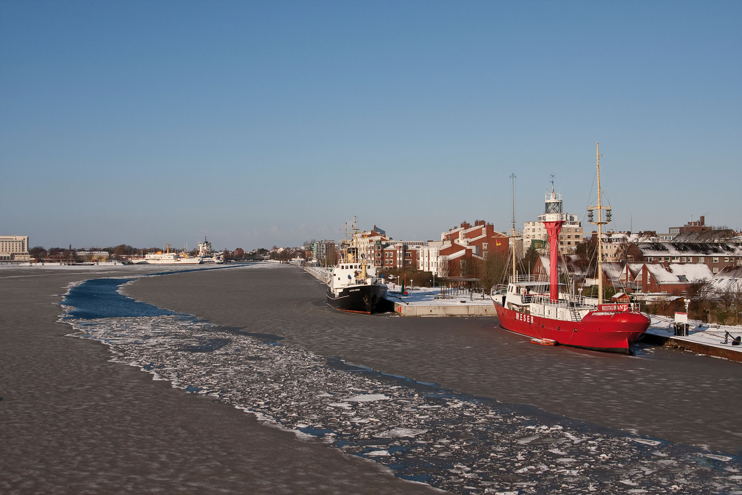 Hafen von Wilhelmshaven im Winter mit Fahrrinne