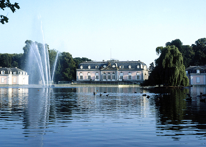 Schloss Benrath mit seinem edlem Park und Wasserspiel.