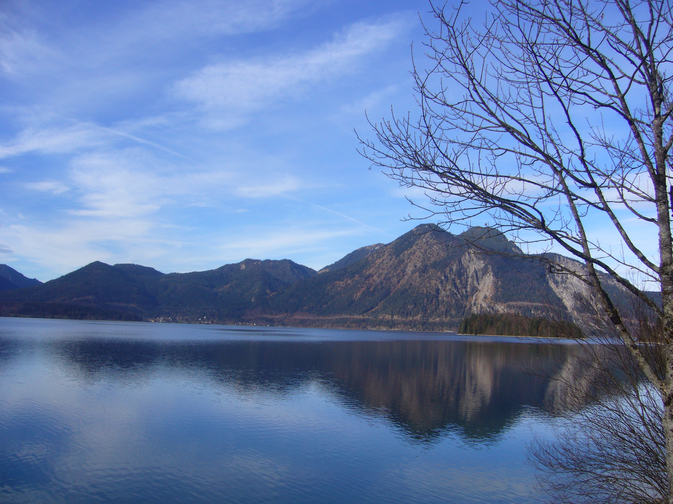 Der Walchensee und die Gebirgsansicht im November.