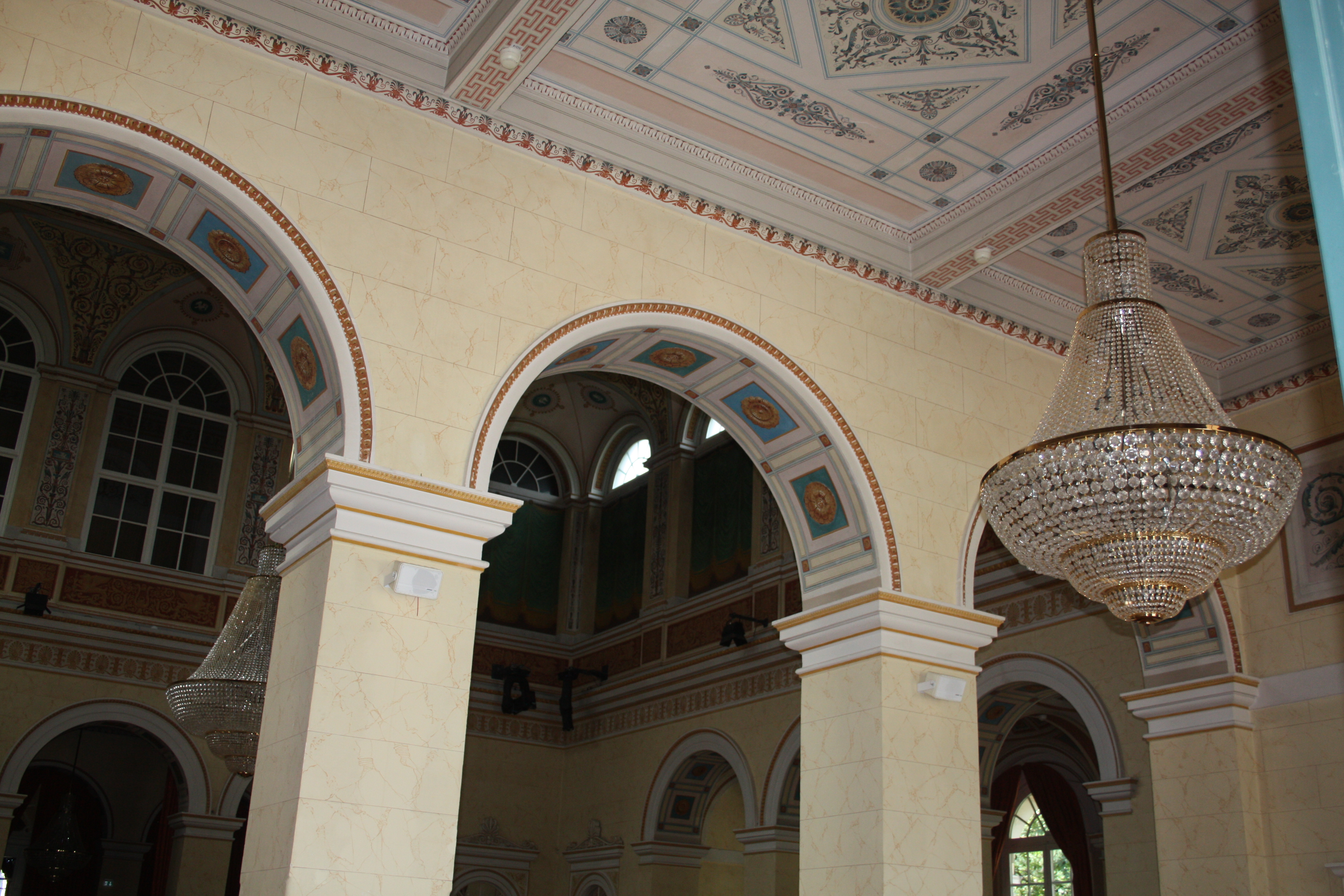 Eingangsbereich mit Kronleuchter des Kursaalgebäudes.